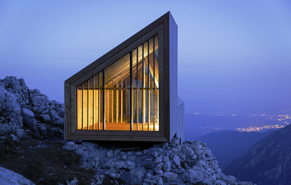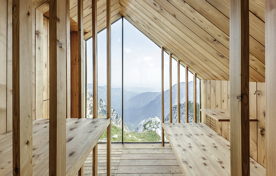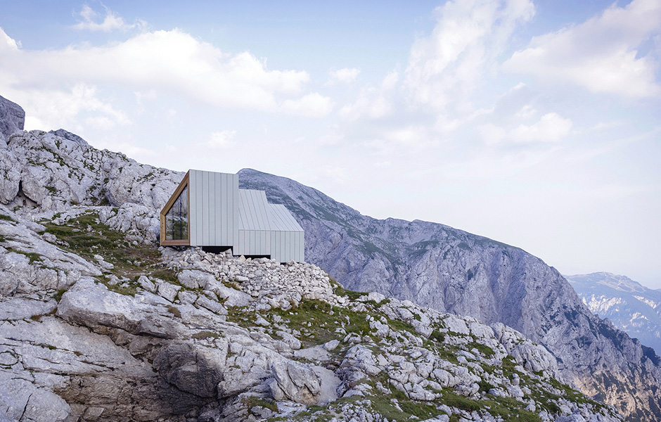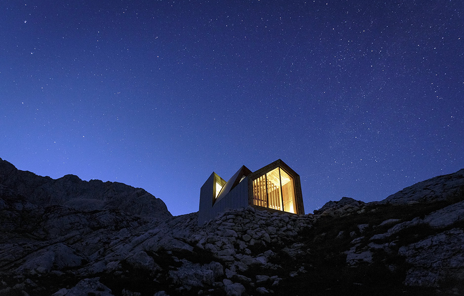 SNÖSTORMAR, RUFFIG TERRÄNG och radikala temperaturskiften, vädret på toppen av Skuta, Sloveniens högsta berg och nationella stolthet, är en utmaning för vilken arkitekt som helst. Tre studenter på Harvard University Graduate School of Design fick uppdraget att designa en övernattningshydda nedanför toppen av berget efter en kurs ledd av den slovenska arkitektbyrån OFIS.
