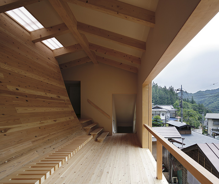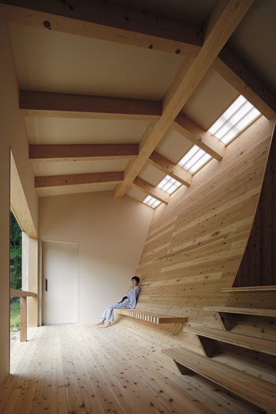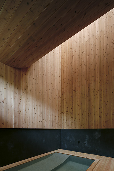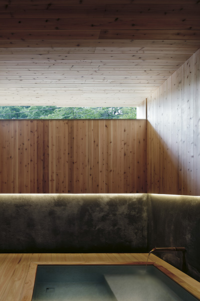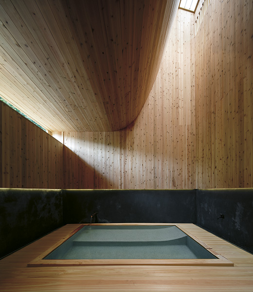 Det senaste tillägget är ett badhus signerat arkitekten Kubo Tsushima. Interiören är uppdelad på två våningsplan som skiljs åt och vävs ihop av en vågformad yta, uppbyggd av limträbalkar klädda med japansk jättetuja (japanese red cedar). Den svängda väggen är placerad så att ljus når från det enda takfönstret ner till båda våningsplanen. Integrerat i väggen finns en bänk av cypress, ett träslag som arkitekten valde för att det doftar så gott. På det nedre planet leds vatten direkt från en het källa ner i en liten bassäng. Även här är japansk jättetuja det dominerande materialet, och innehavarna uppmanar besökarna att gå barfota på de silkeslena brädorna.«
