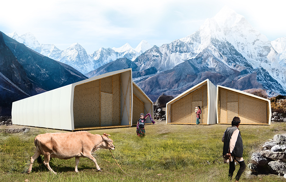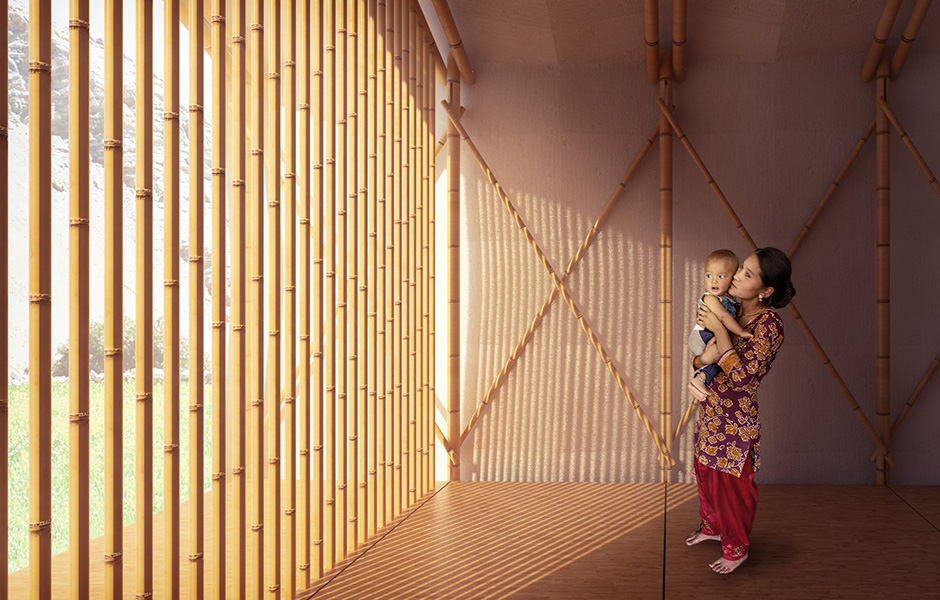 OSB-SKIVOR OCH BAMBU är råmaterial till arkitekten Barberio Colellas konceptbyggnad »Just a minute«. Att bygga den tar något längre tid än så – men inte mycket mer om man ska tro arkitekten. Huset är Colellas bidrag till att lösa situationen efter den stora jordbävningen i Nepal i april 2014, då hundratusentals människor blev hemlösa.