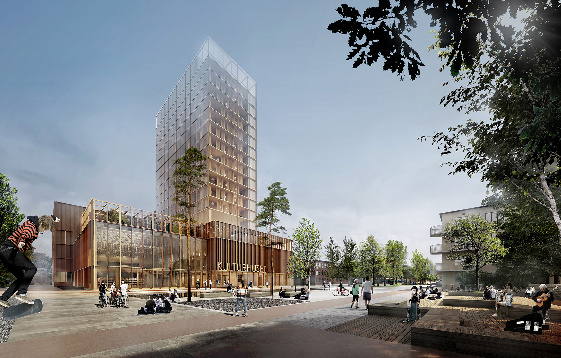 »Byggnaden utstrålar lokal förankring genom sin träkaraktär där träet ger identitet till byggnaden.« Så skriver juryn i arkitekttävlingen om Skellefteås nya kulturhus i sin motivering till vinnarförslaget »Sida vid sida«, signerat White Arkitekter. Byggnaden ska rymma bibliotek, teater, konsthall, allmänna samlingsplatser samt ett hotell. Ett femtiotal kontor deltog i tävlingen och det vinnande förslaget har en bärande struktur av limträbalkar. I övrigt domineras byggnaden av glasytor som gör trästommen synlig i alla väderstreck.