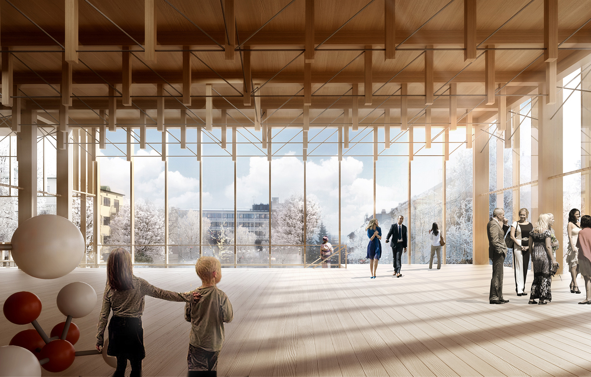 Huset ska ligga mitt i Skellefteå, på en plats som i dag genomsyras av parkeringar och ett resecentrum. Interiört kommer träet också att få stort utrymme, inte minst genom »Kulturtrappan«, centrumpunkten i ett öppet rum som binder ihop byggnadens olika verksamheter. Trappan ska användas som en öppen scen och en offentlig yta där Skellefteåborna kan mötas. En ljusgård med trädplanteringar på taket skapar ytterligare en mötesplats på byggnadens tak.«