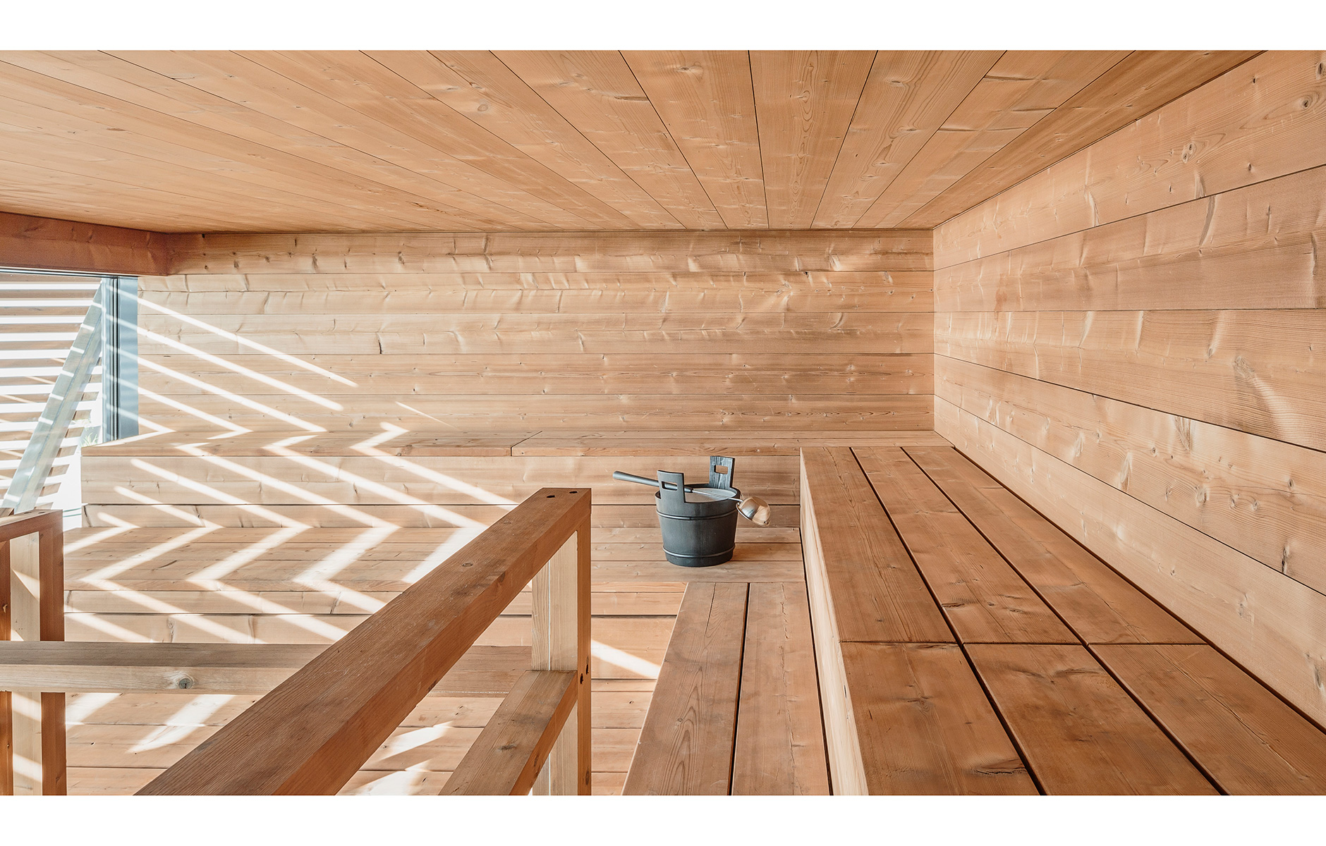 – Vi behövde väldigt stora, tjocka och slitstarka plankor. Dessutom måste de enkelt gå att få tag på till ett överkomligt pris. Vi byter nämligen ut bastuträet vartannat år på grund av dess intensiva användning. Valet föll då ganska snart på värmebehandlad furu och gran som uppfyller alla kriterier för ett bra bastuträ, säger Anu Puustinen.