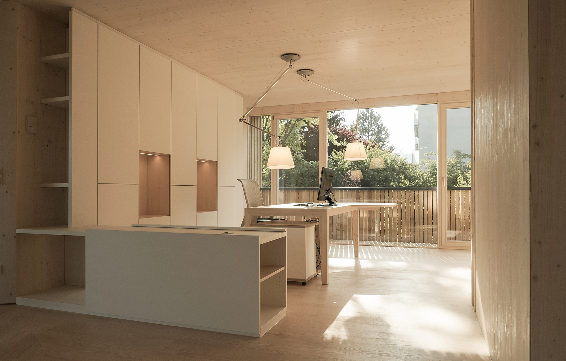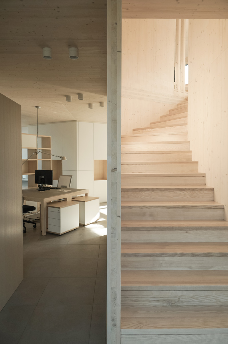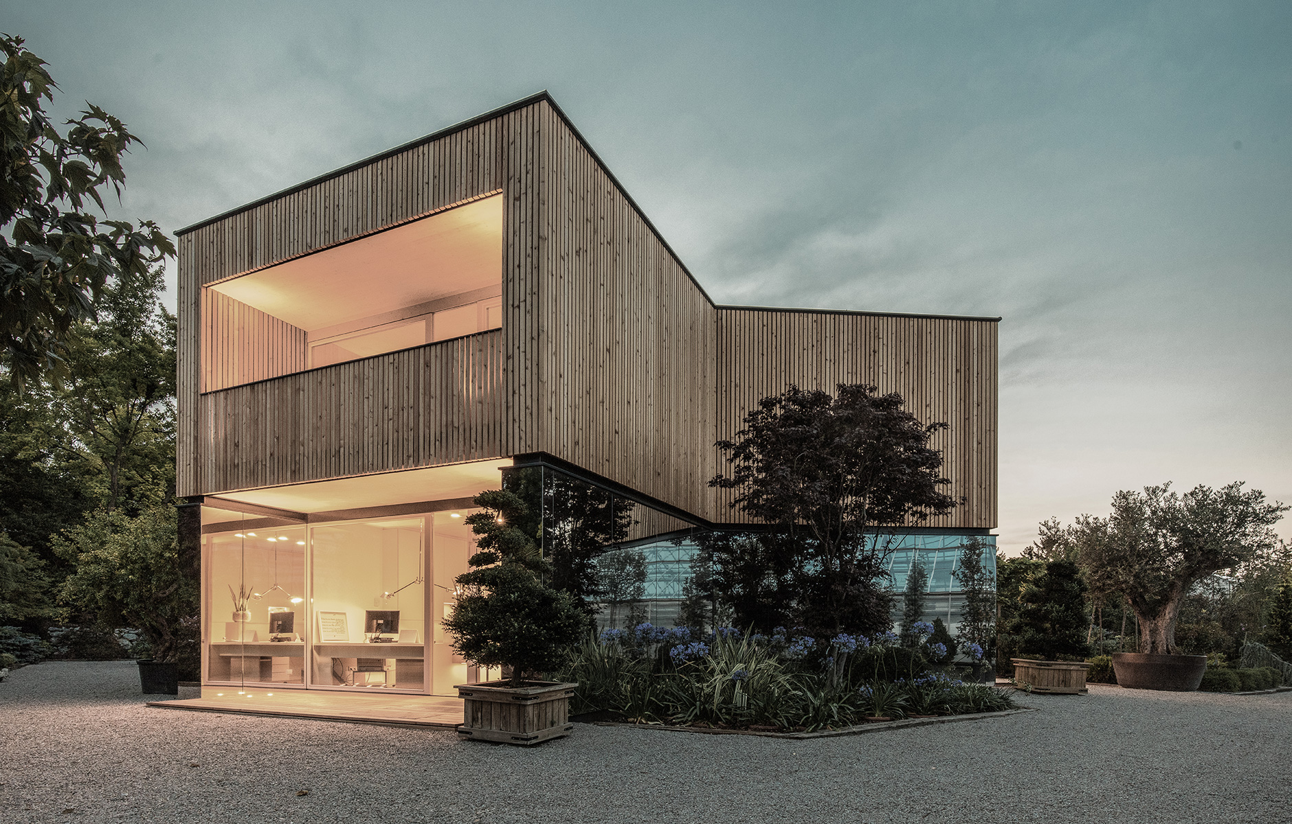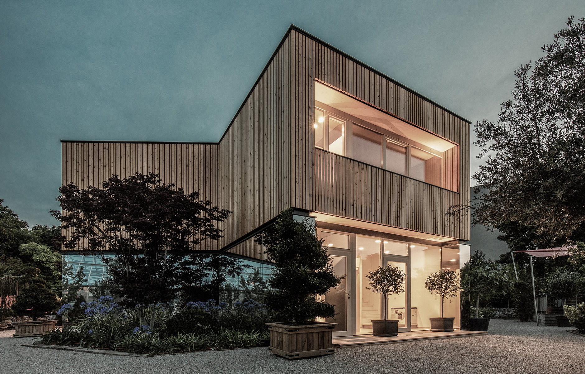 I samarbete med arkitekten Gehrard Haumer. Speglarna som täcker nedre planet på denna konstruktion i KL-trä är tänkta att lyfta fram de omgivande växterna och ge det övre planet ett intryck av att sväva. På insidan lämnas KL-träets yta av granvirke synlig medan trappor och andra snickerier är tillverkade av ask.