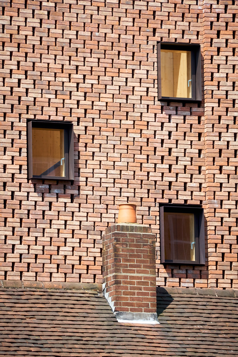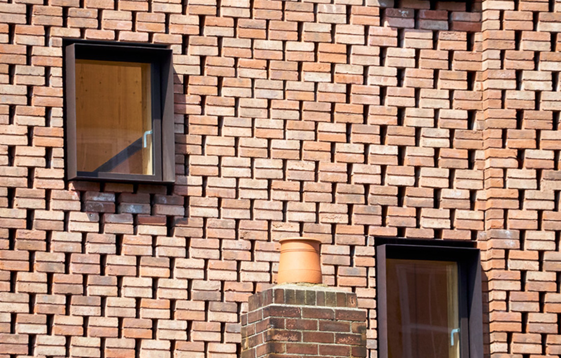 Utmed ena sidan av gatan Barret’s Grove sträcker sig ett tjugotal tidstypiska viktorianska radhus. På den andra sidan är bebyggelsen mer blandad och på en smal tomt, mellan ett flerbostadshus och en pampig grundskola i edwardiansk stil, har en nykomling lirkat sig in. Det slanka, vertikala uttrycket i det nya, sex våningar höga bostadshuset ritat av Amin Taha Architects, förstärks av mötet med de lägre radhusen mittemot. Husen verkar flirta med varandra, och det märks att arkitekten anammat det klassiskt viktorianska förhållningssättet att införliva någon form av designsymmetri med gatans befintliga bebyggelse.