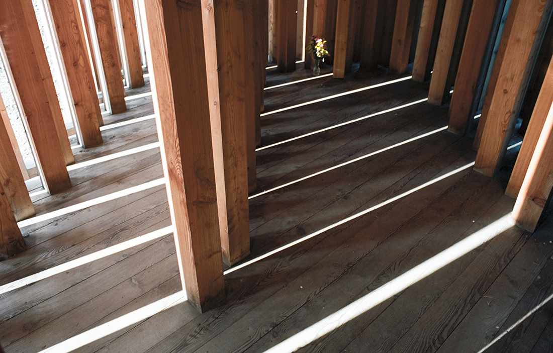 Kapellet har byggts i etapper, varje år görs en vandring till platsen. Första vandringen deltog 30 personer och nu senast fler än 300. Vandringen börjar nere i byn och går uppför en bergssida. Stigen slutar med en spiral som invändigt formas av kapellet och saktar ner vandringen. I ett rum format av enbart träpelare möts besökaren bara av det ständigt föränderliga ljuset.