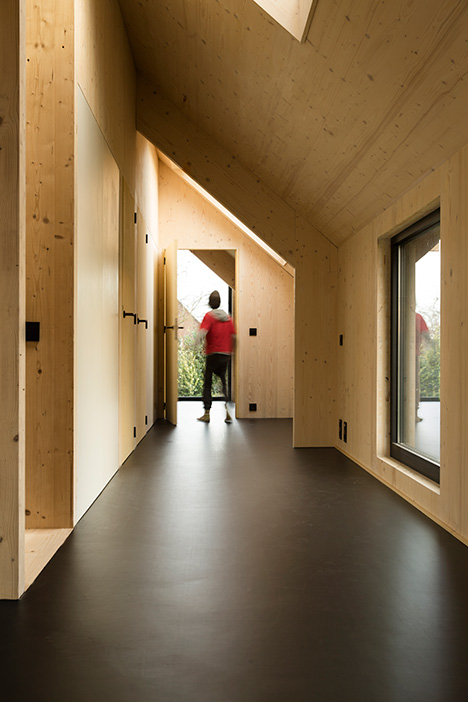 – Hjortarna behöver lugn och ro från parningssäsongen som startar i oktober fram tills ungarna föds på våren, så vi hade bara sex månader på oss att bygga huset. Vi visste att trä som material kortar ner tidsspannet för byggprocessen, eftersom man kan jobba både med in- och utsidan av huset samtidigt, säger Sylvie Bruyninckx, arkitekt på Viva Architecture, som ritat huset.