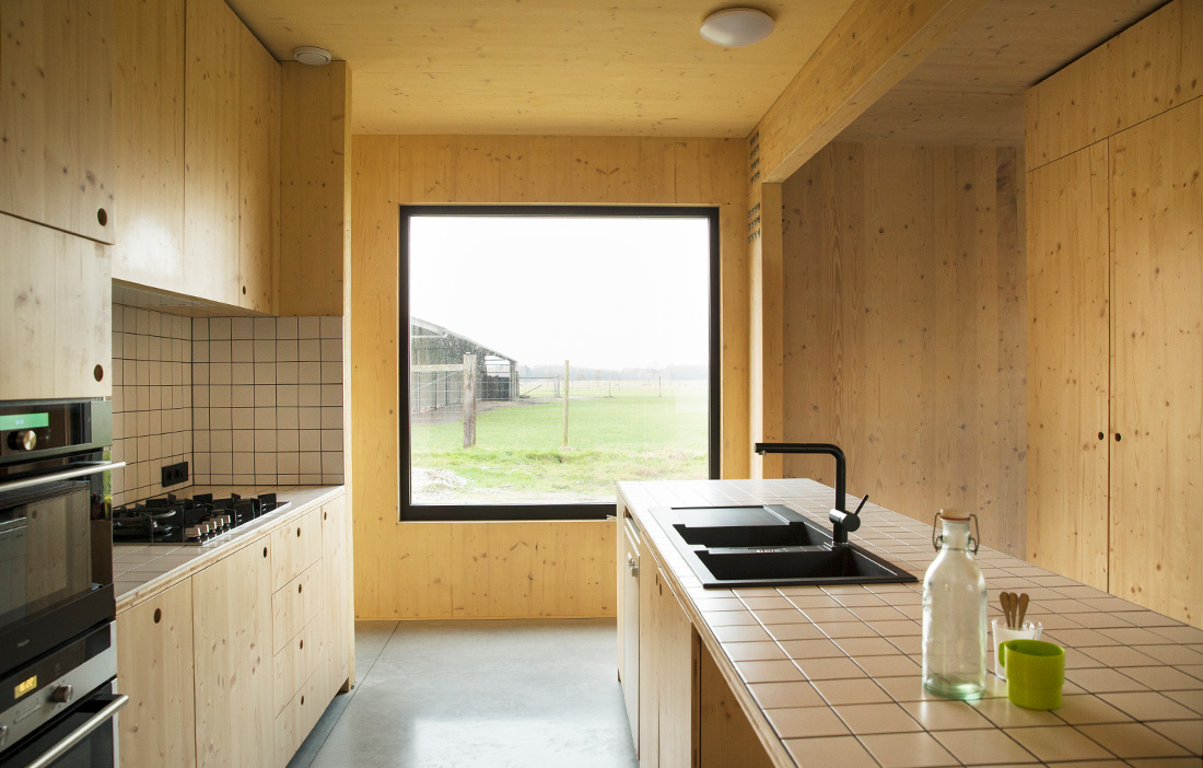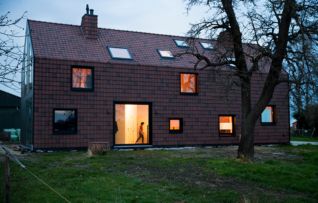 – Trä är ett lätt material som ger en energieffektiv konstruktion utan behov av tunga väggkonstruktioner och dyra grundläggningar. Trä ger också automatiskt bra akustik, luftkvalitet och brandskydd. Dessutom är det vackert och hållbart. Vi tycker om känslan av det och det passar bra in med familjens visioner och ambitioner på gården, säger Sylvie Bruyninckx.