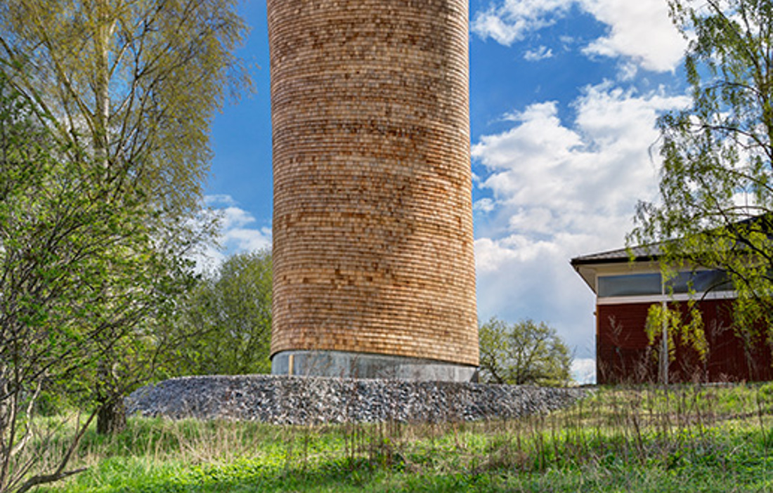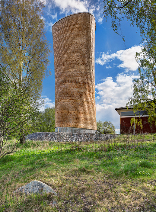 Den starka, lätta skivan – Utvecklingen av träbyggandet har gått framåt med rejäla kliv under 1900-talet. Konstruktionselement med limmade och sammansatta tvärsnitt har gjort att allt fler rationellt producerade och samtidigt avancerade träbaserade byggprojekt har sett dagens ljus. Digital styrning av hela kedjan, från design till produktion, lämpar sig väldigt väl att applicera på träområdet. Tack vare sin bearbetbarhet erbjuder materialet obegränsade möjligheter att utforma och optimera konstruktionsdelar, byggelement och hög prefabriceringsgrad till en låg energikostnad. Ett exempel är avluftningstornen i Lill-Jansskogen i Stockholm (fig 1), som tillverkats genom urfräsning av ramar ur KL-träskivor, vilka staplats ovanpå varandra och dragits samman med stålstänger.