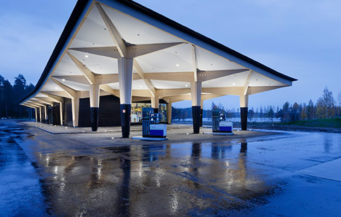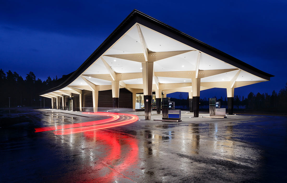 Längs med e75 som sträcker sig från Grekland till Nordkap finns det många rastställen. Ett av de nyaste och förmodligen det mest spektakulära är det kombinerade hotellet, restaurangen och bensinmacken i Niemenharju intill sjön Kolima i mellersta Finland. Byggnaden är designad av den Helsingforsbaserade firman Studio Puisto.