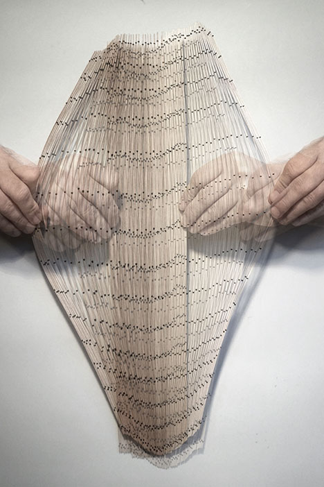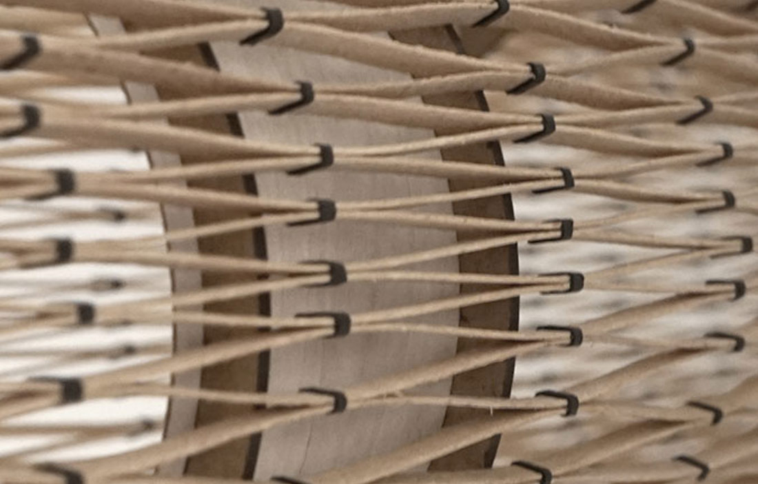 De svenska arkitekternas paviljong är tänkt att utforska träets elastiska egenskaper. Genom att sträcka ut träet skapas en stark rumslighet, lite som ett tält, där en tunn duk är uppspänd på tunna bågar. I det här fallet är duken