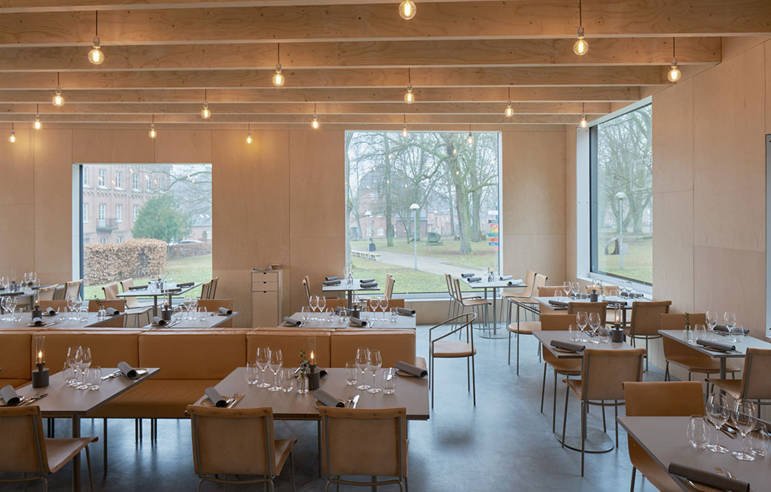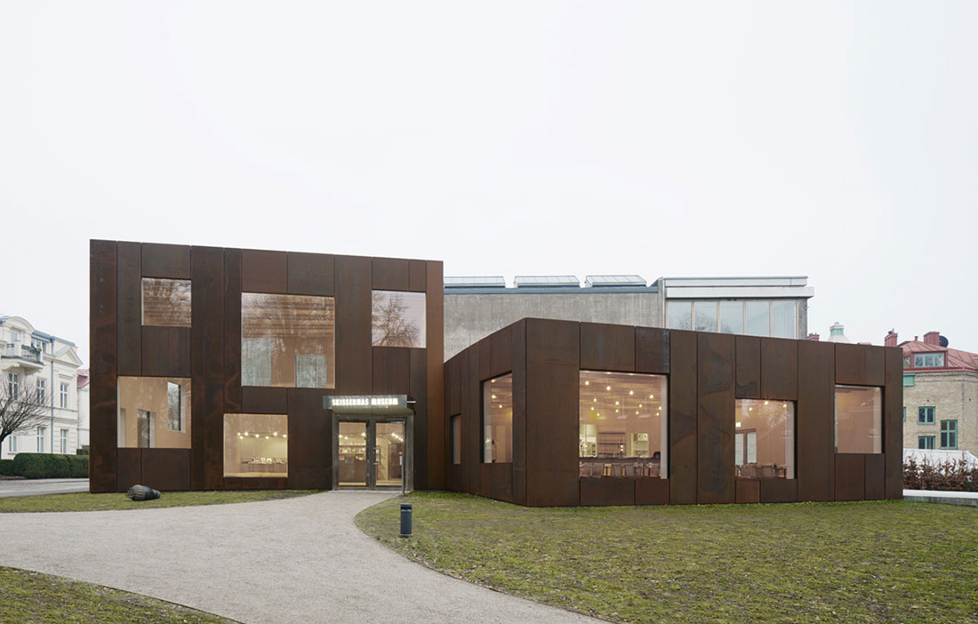 De två volymerna formar sig i en mjuk båge längs den intilliggande skulpturparken och är invändigt klädda med björkplywood. Tillbyggnaden är konstruerad för att låta rumssekvenserna fånga riktningar och flöden, samtidigt som museets besökare ska få känslan av att alltid befinna sig på dess framsida, oavsett från vilket håll de kommer. Fasaderna är klädda med corténstål för att harmoniera med områdets tegelfasader.