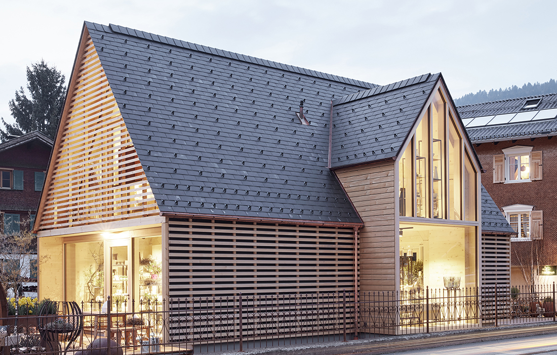 En trädgårdsbutik och en heminredningsbutik skulle slås ihop till en. För att ge båda verksamheterna tillräckligt med utrymme kompletterades den nyligen renoverade huvudbyggnaden med en mindre tillbyggnad. Gemensam ingång och stora skyltfönster resulterade i en sammanhållen butik i två plan, där långsidornas distinkta gavlar med horisontell läkt av gran låter byggnaden smälta in i kvarterets övergripande formgivning.