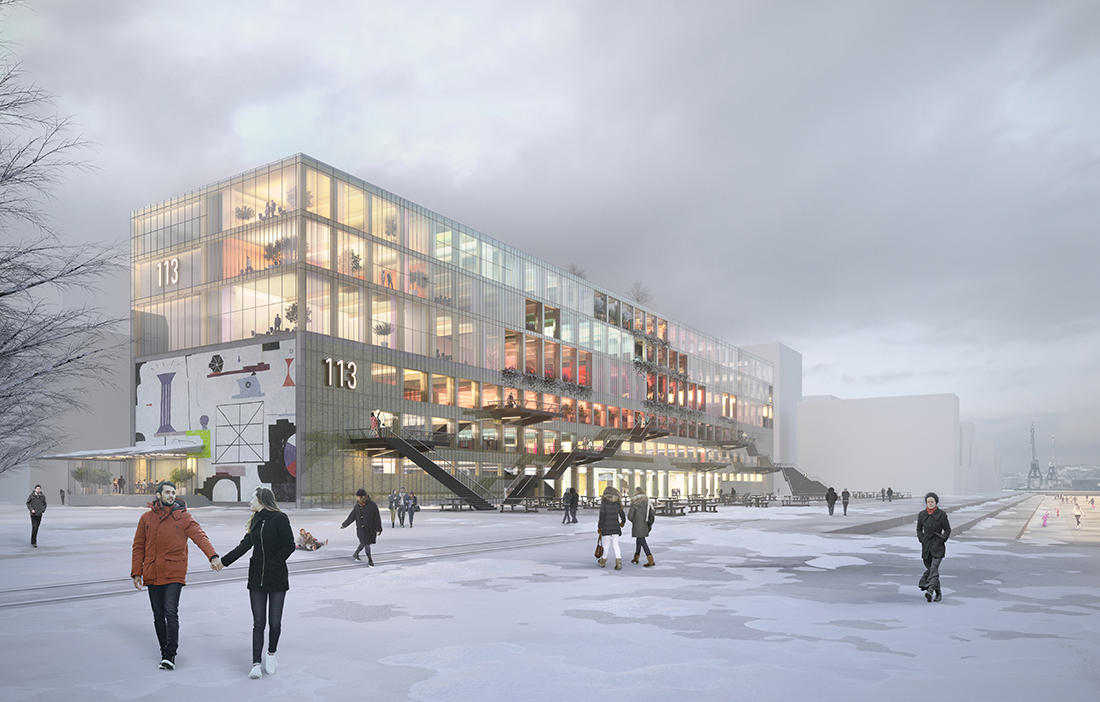 Göteborg står inför en stor urban utveckling. Frihamnen ska förvandlas till Älvstaden och en ny stadsdel som erbjuder gröna och inkluderande värden ska växa fram. Då får också en av de gamla lagerbyggnaderna en mjukare framtoning. bsk Arkitekter har tillsammans med nederländska mvrdv fått i uppdrag att utveckla och expandera Magasin 113, den byggnad som i dag står på platsen. Magasinet ska utökas till 16 500 kvadratmeter och bli ett nytt kulturellt och kreativt centrum. Därutöver ska det också rymma kontorslokaler, kafé, turistinformation och butiker.