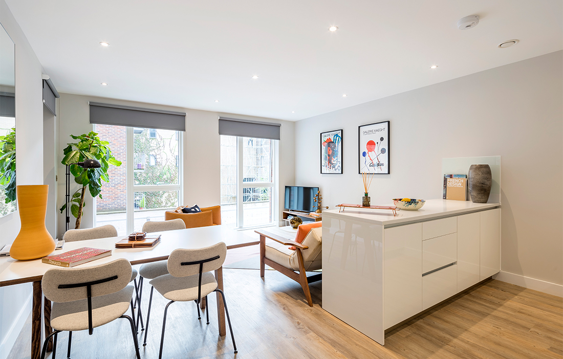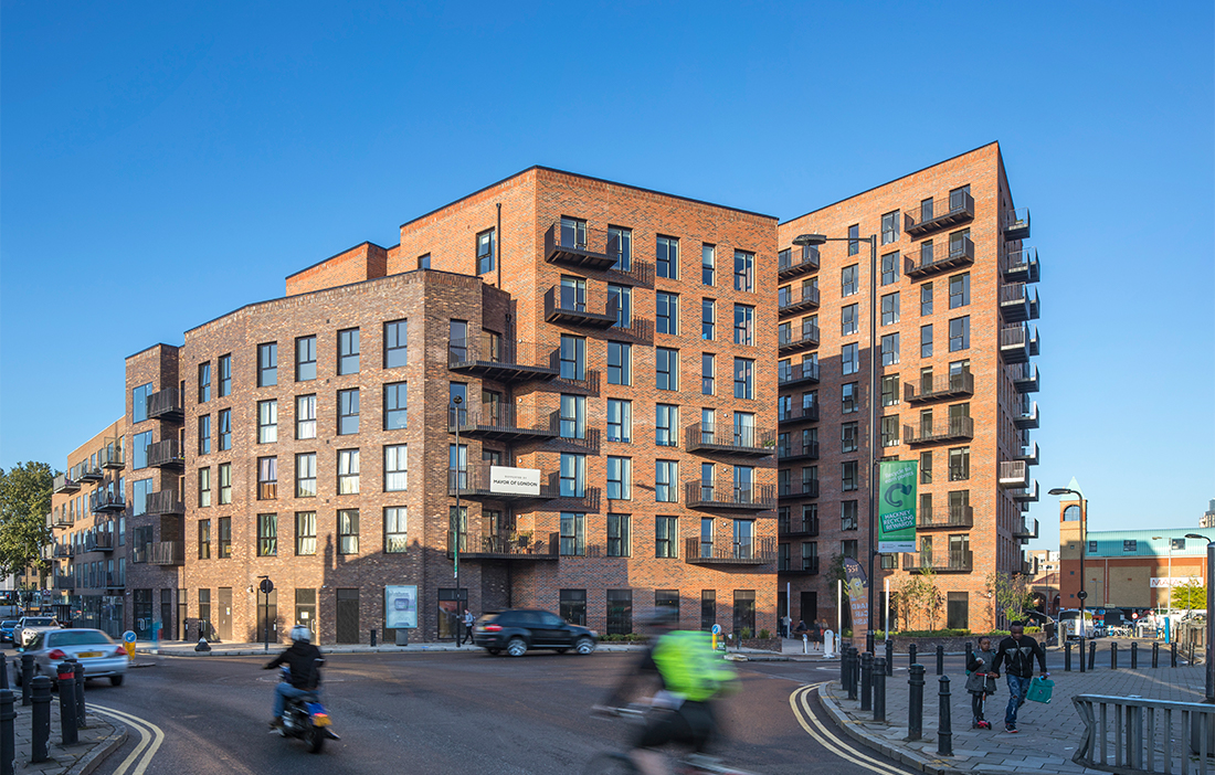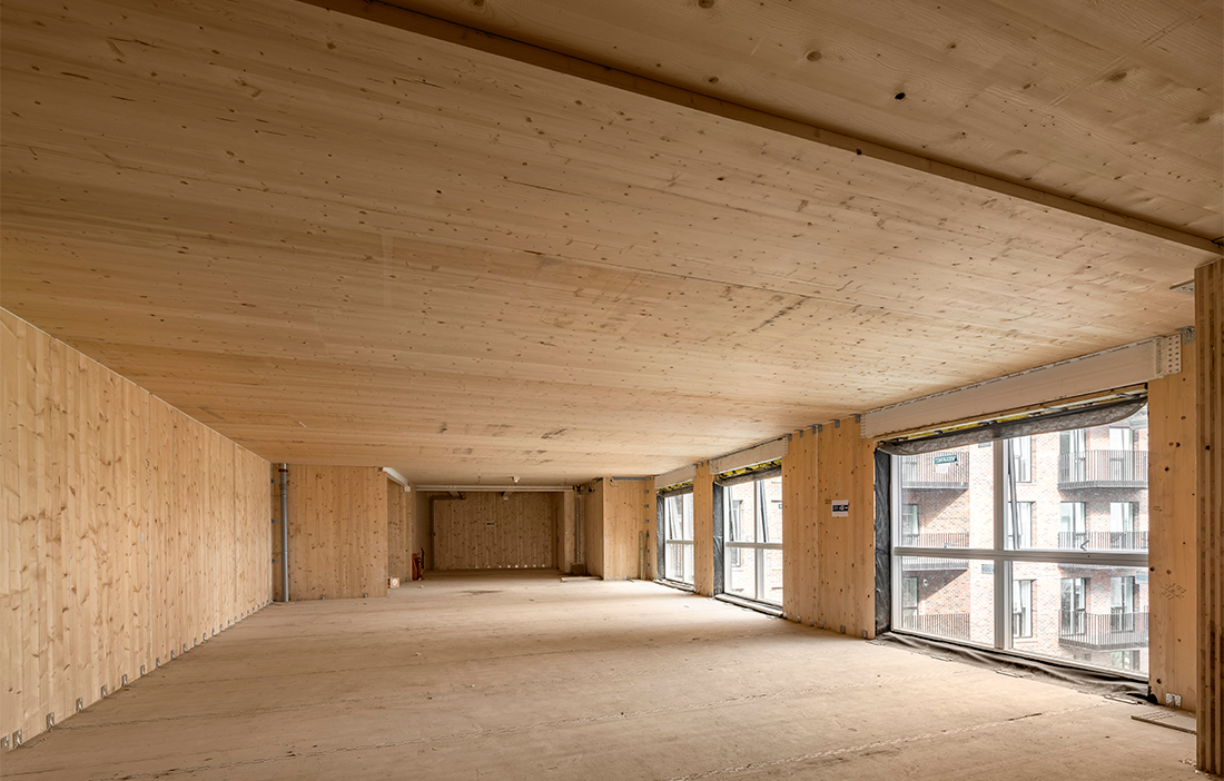 Utifrån sett en tegelfasad som smälter in i kvarteret. Invändigt, inredning i trä och en stomme av KL-trä. Världens största byggnad av KL-trä ska nu visa möjligheten att använda trä i Londons olika stadsbyggnadsprojekt. Det är nämligen tack vare materialet som byggnaden kunde bli så omfattande – den består av flera kroppar där höjden varierar från fem till tio våningar. Stommen av KL-trä är fem gånger lättare än om man i stället hade använt betong, vilket öppnade för Waugh Thistleton Architects att öka antalet våningar trots att hänsyn behövde tas till en planerad järnvägstunnel under huset.