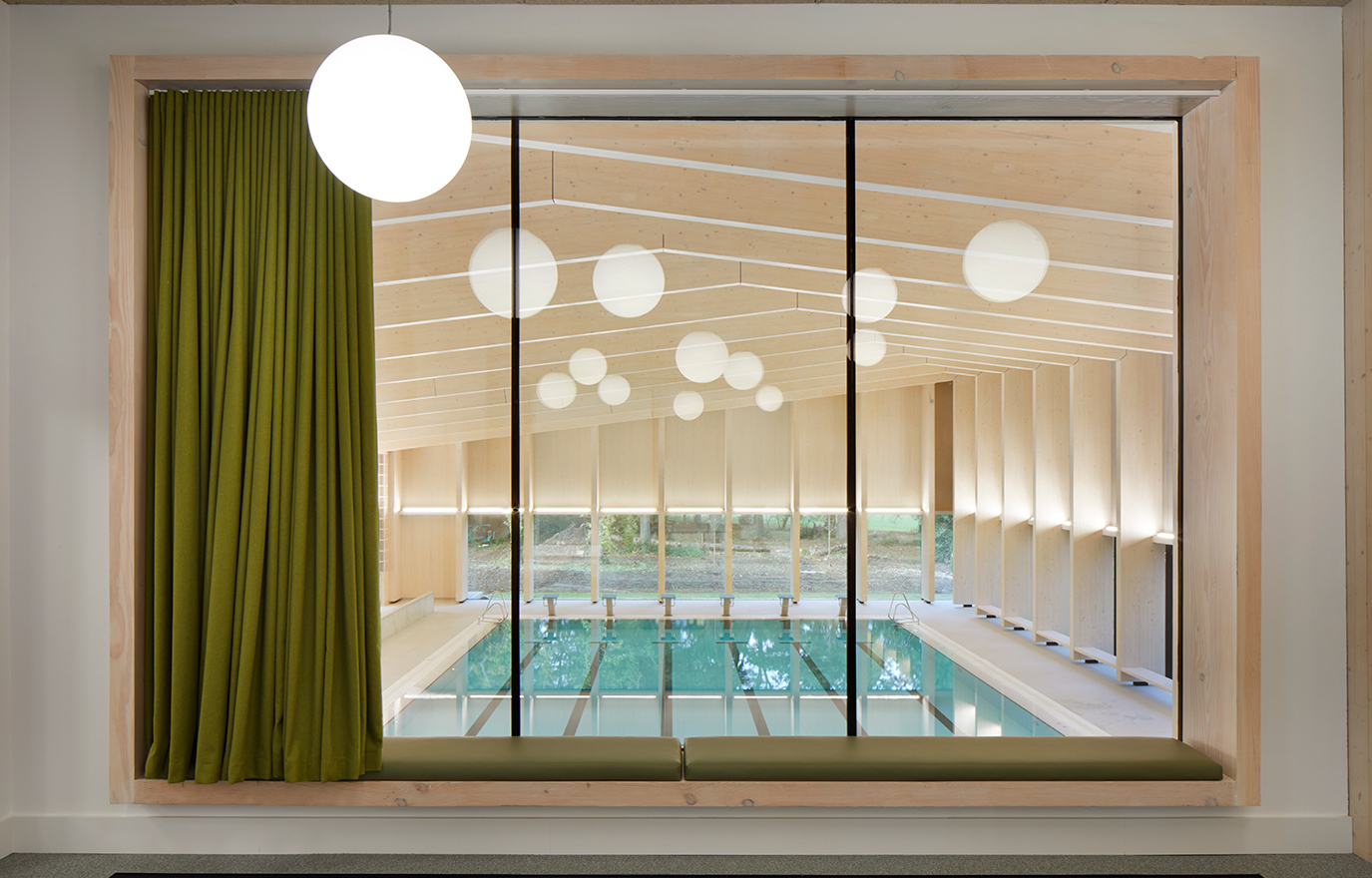 – Simbassänger brukar kunna vara ganska röriga, det är mycket folk och många funktioner som ska in. Jag tycker att vi har lyckats skapa något nytt på Freemen’s School. En avskalad, funktionell och estetiskt tilltalande byggnad som samtidigt ger ett varmt intryck för besökarna. Och hela tiden med den gamla ekskogen som en lugn och trygg fond.