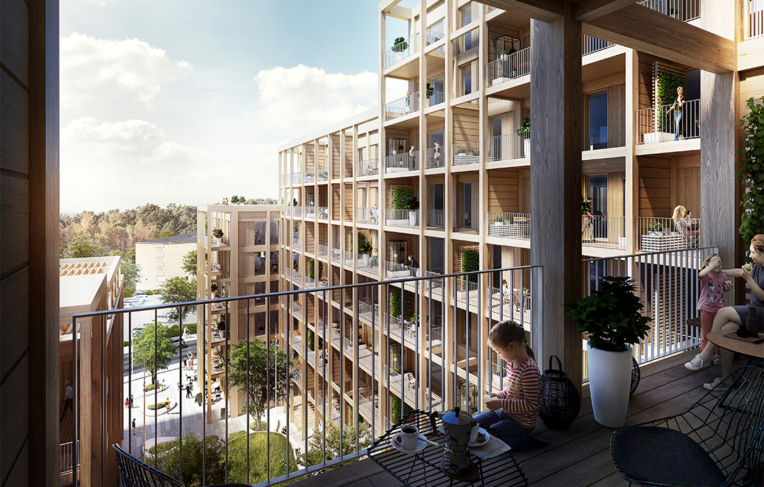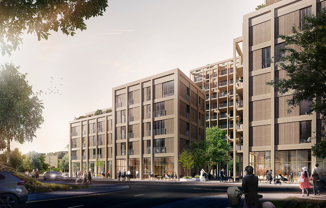 Allt fler börjar ta fasta på att trä är bra för människors välbefinnande, och när nya kvarter planeras blir det allt vanligare att trä som material synliggörs. Ett exempel är det vinnande bidraget i arkitekttävlingen i Sundbyberg utanför Stockholm, där ett nytt kvarter ska skapas i stadsdelen Ör med fokus på att leva hållbart. Förslaget är skapat av Folkhem och Arkitema Architects, och en uttalad vision är att sätta trä i fokus.