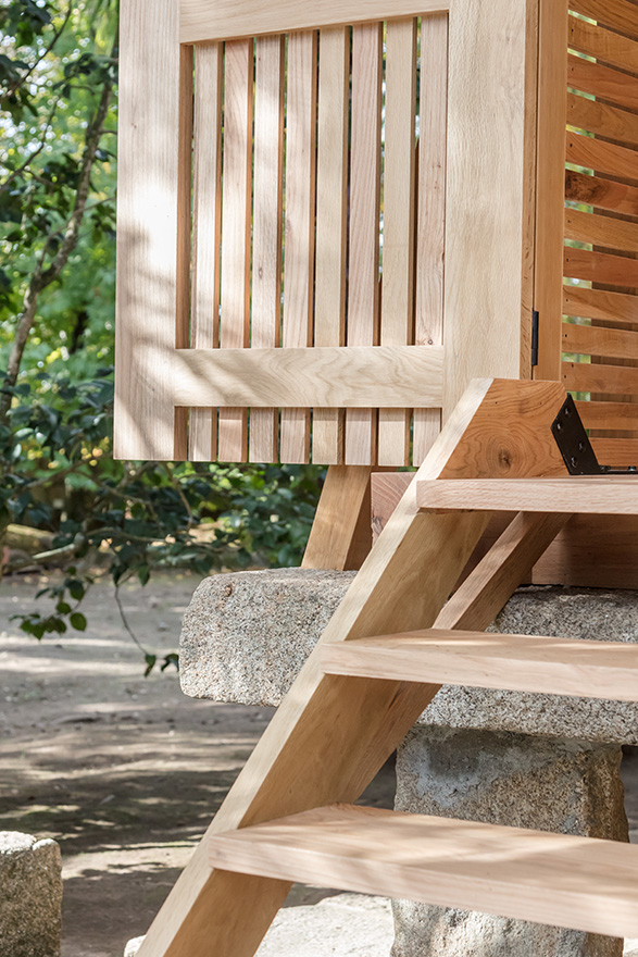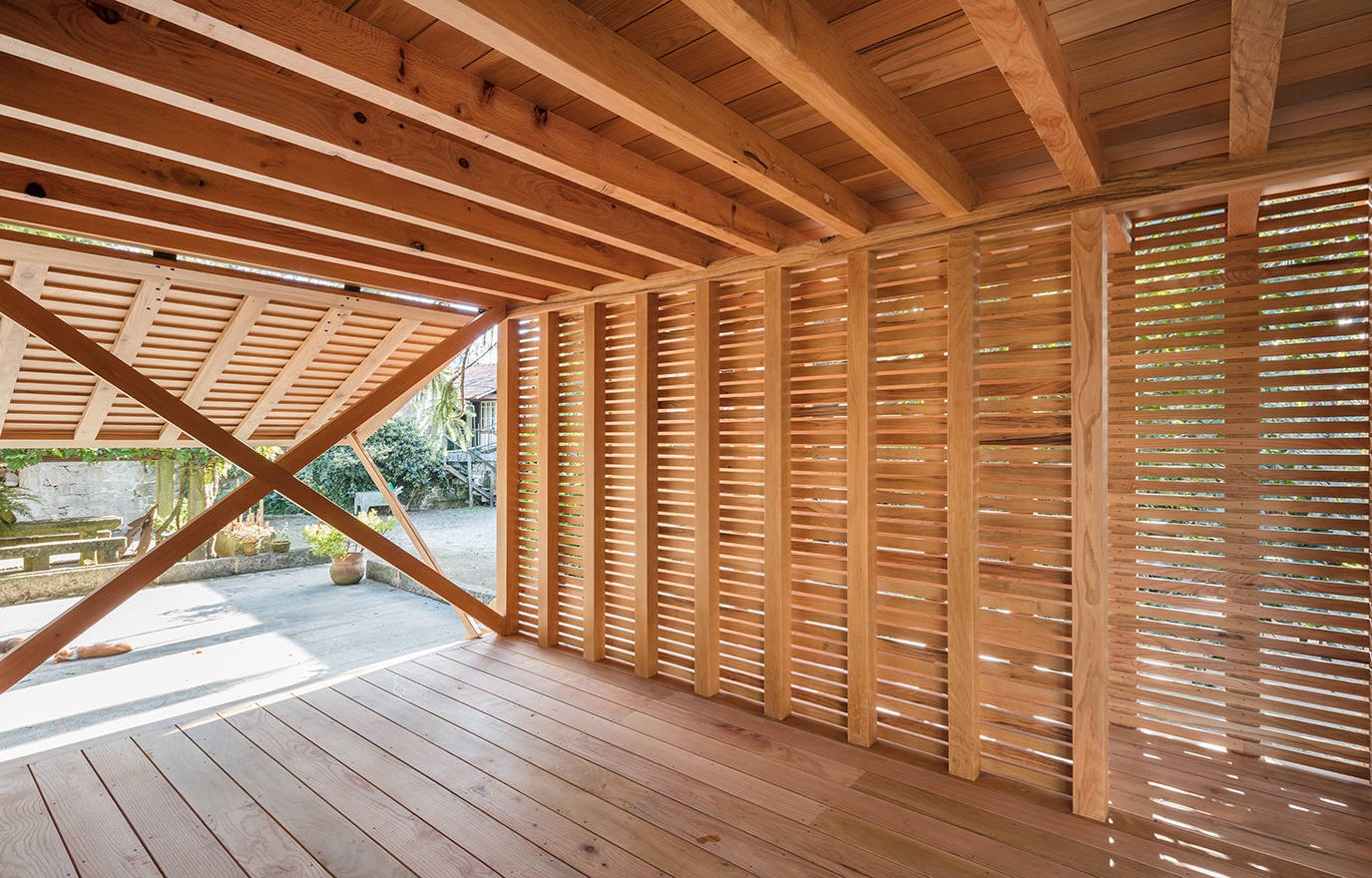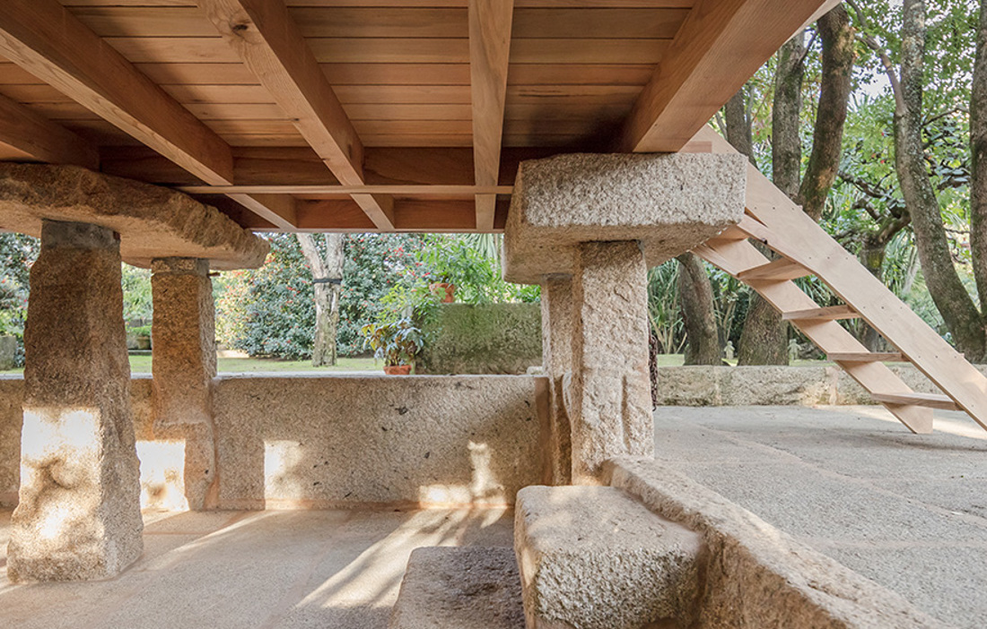 Ett gammalt spannmålsmagasin i norra Portugal har fått nytt liv. Redan på 1000-talet byggdes dess två små rum för att ha en plats att torka och förvara årets skörd i. Högst upp rymde byggnaden också ett duvslag där bondgårdens tama duvor bodde. Magasinet byggdes av ek men med en underdimensionerad konstruktion och utan underhåll förföll det i förtid. Formen har emellertid kunnat bevaras, mycket tack vare de stålkättingar som spända mot närliggande träd har hållit stommen på plats under alla år. Därmed har man kunnat återskapa hela byggnaden och bit för bit rekonstruera den till samma avancerade design och med de detaljer som fanns tidigare. Av säkerhetsskäl och för att anpassa byggnaden till dagens användningsområde har arkitekterna på Tiago do Vale dock fått göra några smärre justeringar.