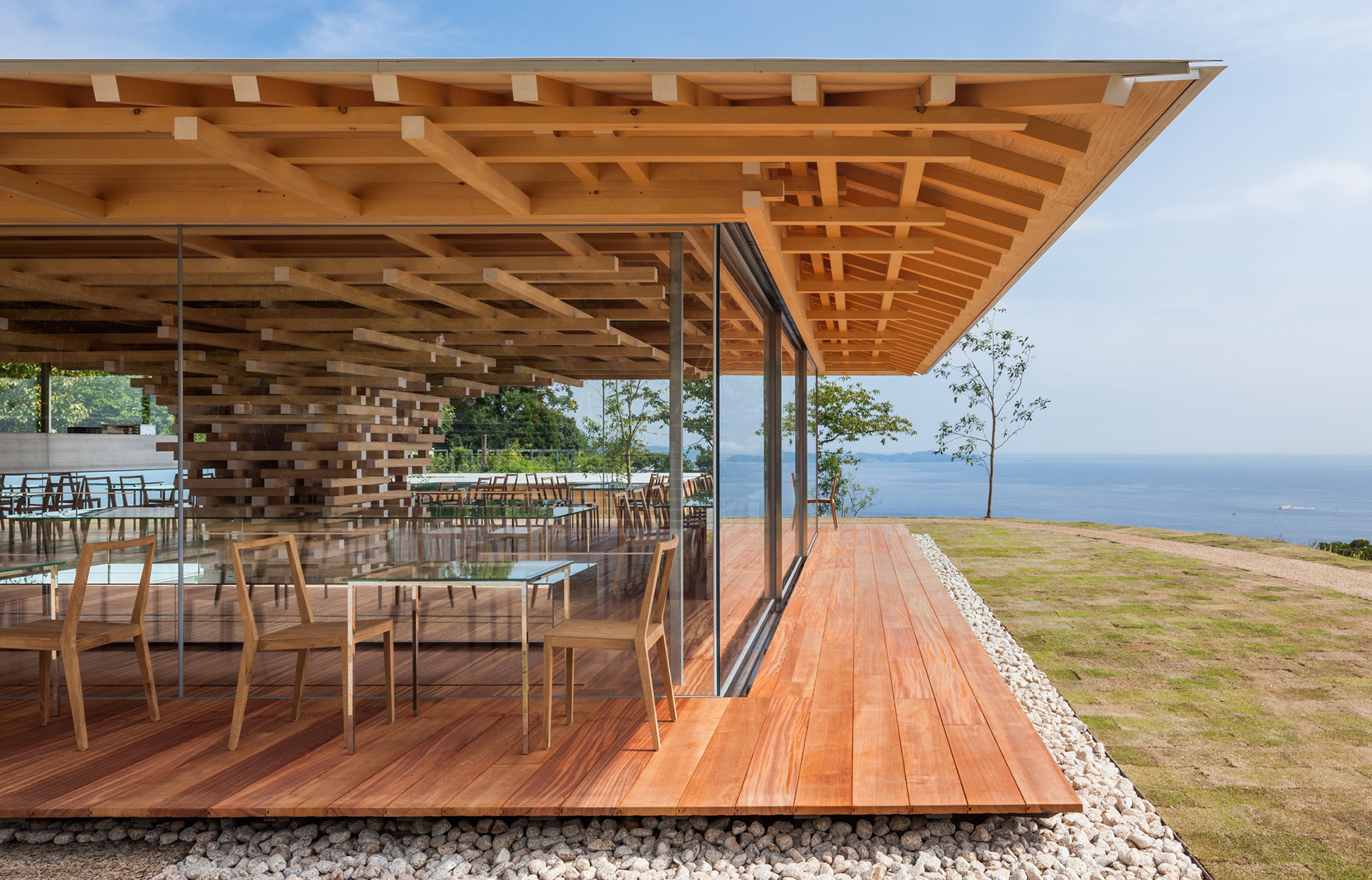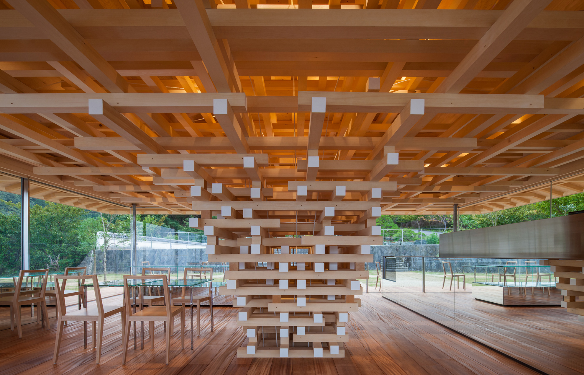 – Hela platsen är omgiven av berg och hav och vi ville skapa en byggnad som passade in i miljön. Inspirationen är hämtad från utrymmet som bildas under ett träd, säger Katsuhito Komatsu, ansvarig arkitekt för projektet hos Kengo Kuma.
