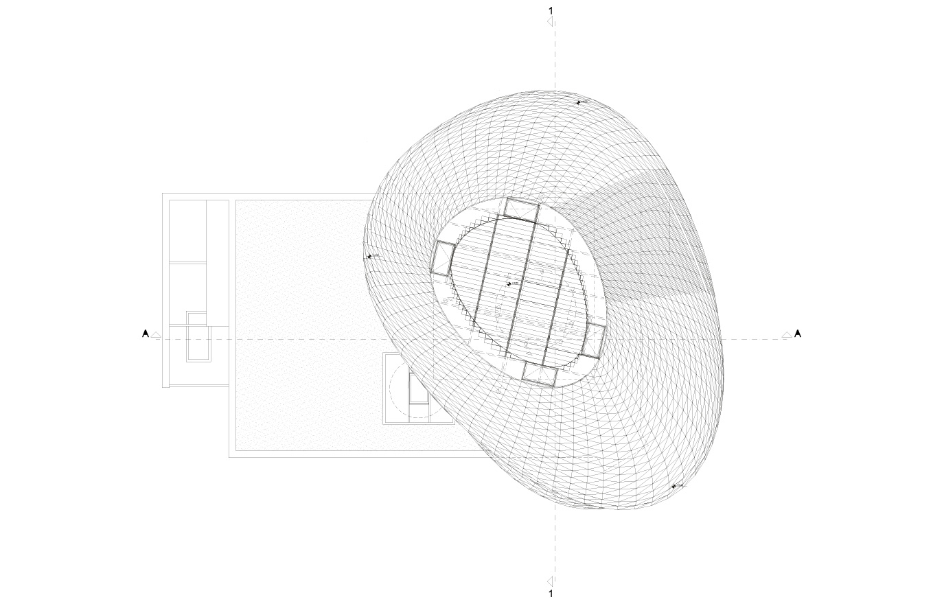Den oregelbundna formen har varit möjlig att åstadkomma genom att arkitekterna har arbetat med 3D- och CNC-teknologi.
