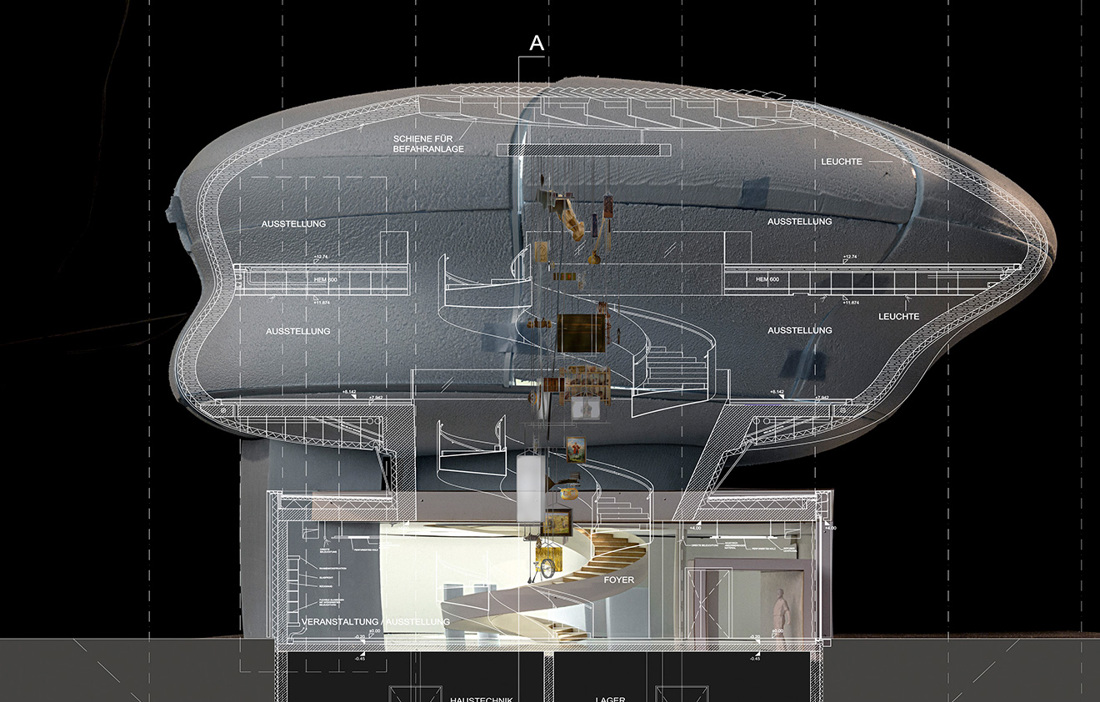 – Det är en kombination av ett moln och ett skepp, en modern form av Noas ark. I Noas ark samlade man viktiga ting som man ville spara för en ny värld, precis som vi här vill bevara och visa brödets historia, berättar Wolf D. Prix, ansvarig arkitekt på Coop Himmelblaus österrikiska kontor.