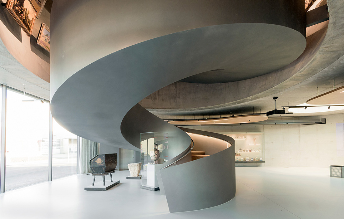 Om utsidan väcker frågor så är det insidan som ger svaren och visar hur allt hänger ihop, hur det till synes omöjliga har visat sig vara möjligt. Här har konstruktionen av KL-trä lämnats välexponerad och kombinerats med betong och glas. Spiraltrappan som leder från nedre till övre våningen i den 20 meter höga trädelen av byggnaden ger överblick över de två våningar där utställningen äger rum och bidrar till känslan av att befinna sig mitt i en virvelvind. Formen är lika mycket värd att lyftas fram som den gigantiska kollektionen av föremål relaterade till bröd, däribland en över tusen år gammal kvarn från Egypten. Längs väggarna finns konst som på olika sätt visar människans relation till bröd.