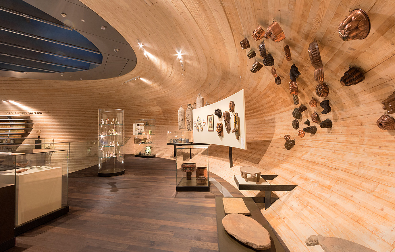 – Arken var av trä, så det var självklart att Paneum också skulle vara det. Här ger materialet den intima inramning som vi ville ha. Det är inte ett traditionellt museum med stora, ödsliga utrymmen utan vi ville skapa en gemytlig känsla. Jag föreslog därför att byggnaden genom sin form skulle bilda ett kulturcentrum, där man kan upptäcka och utforska, med ett mer personligt uttryck än ett traditionellt museum.