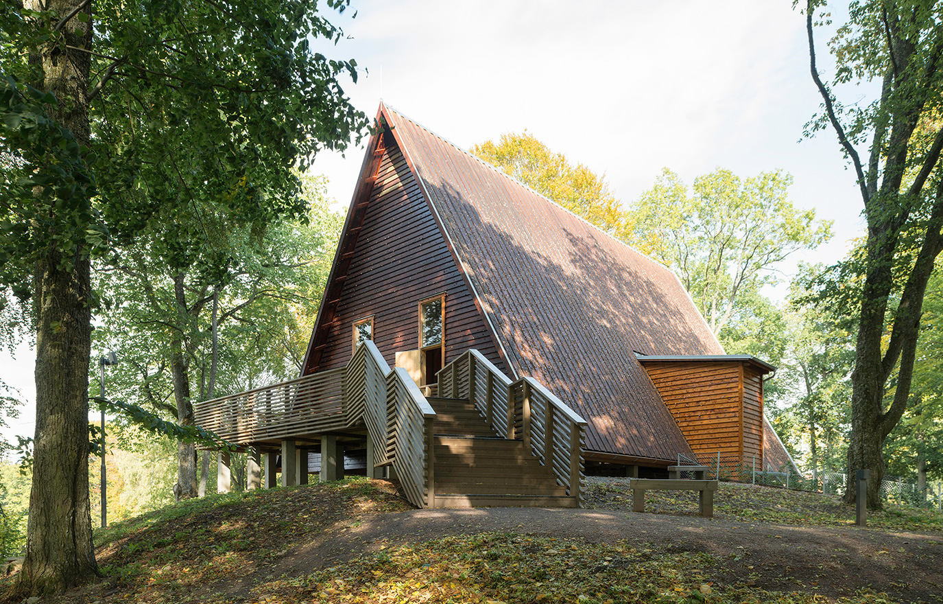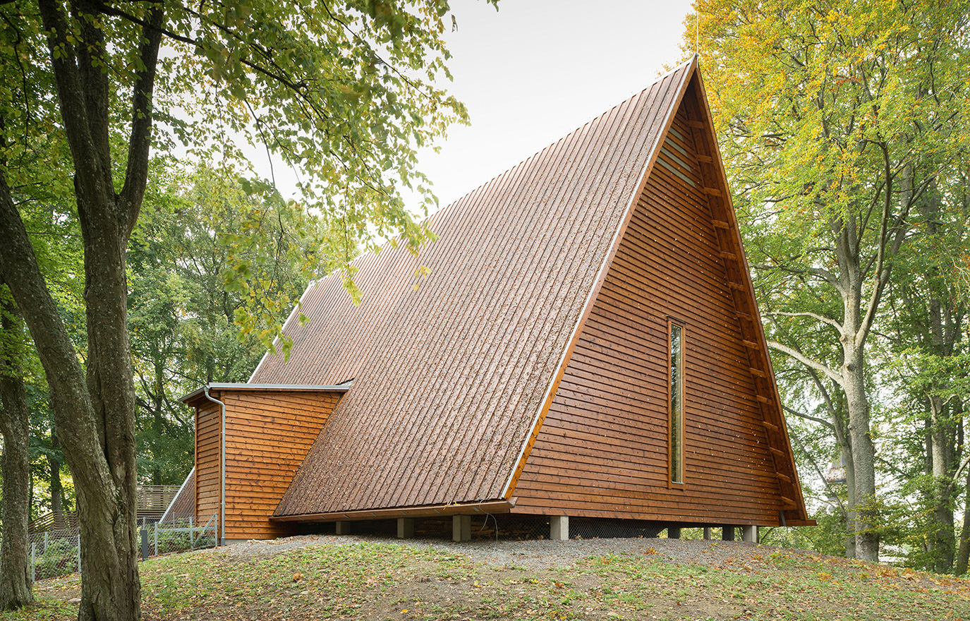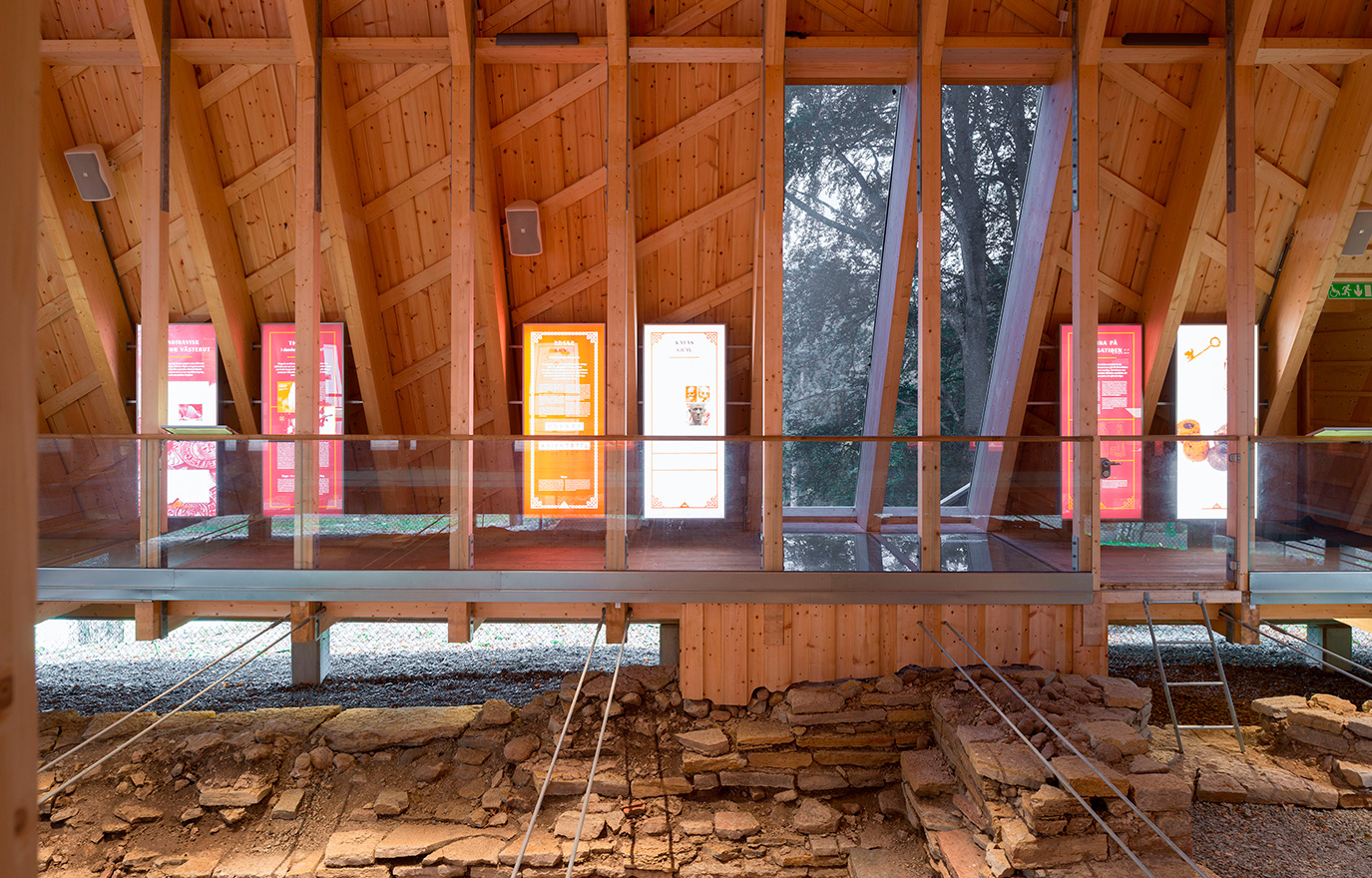 Överbyggnaden, som invigdes för ett år sedan, är inspirerad av mötet mellan olika religioner och frågan om hur olika trosinriktningar kan komma överens. Utifrån det har aix Arkitekter skapat formen av en liksidig triangel, vilken ska symbolisera en treenighet. Limträtakstolarna är placerade på horisontella syllar, likaså av närproducerat limträ, vilka vilar på ett antal betongplintar. De lutande väggarna är täckta av ett trätjärat faltak. Inifrån rummet kan besökarna ta del av platsens historia och även besöka den gamla källaren. De får lära sig mer om Kata, kvinnan som styrde på gården, och genom glasgolvet kan de se hennes grav.
