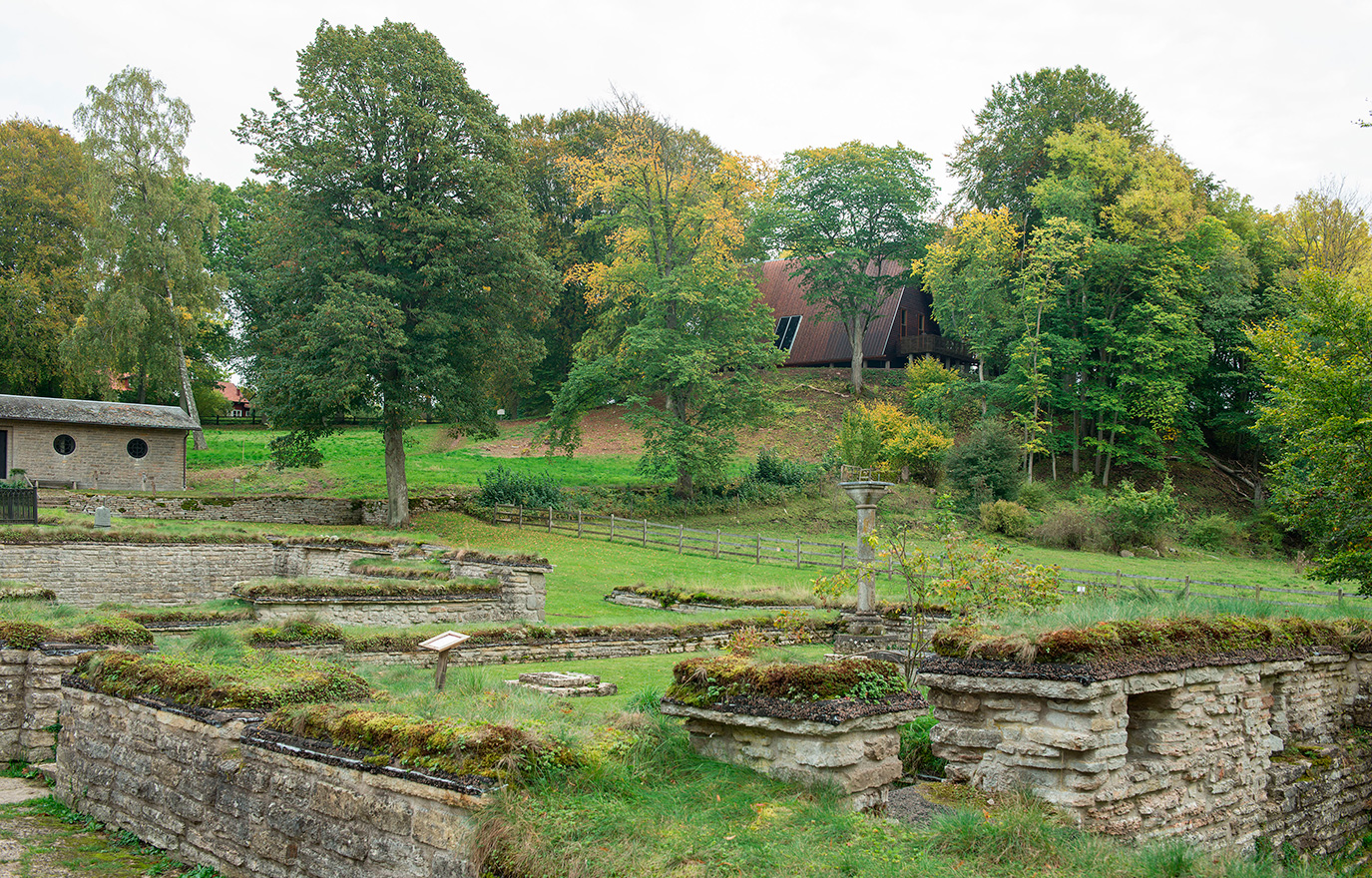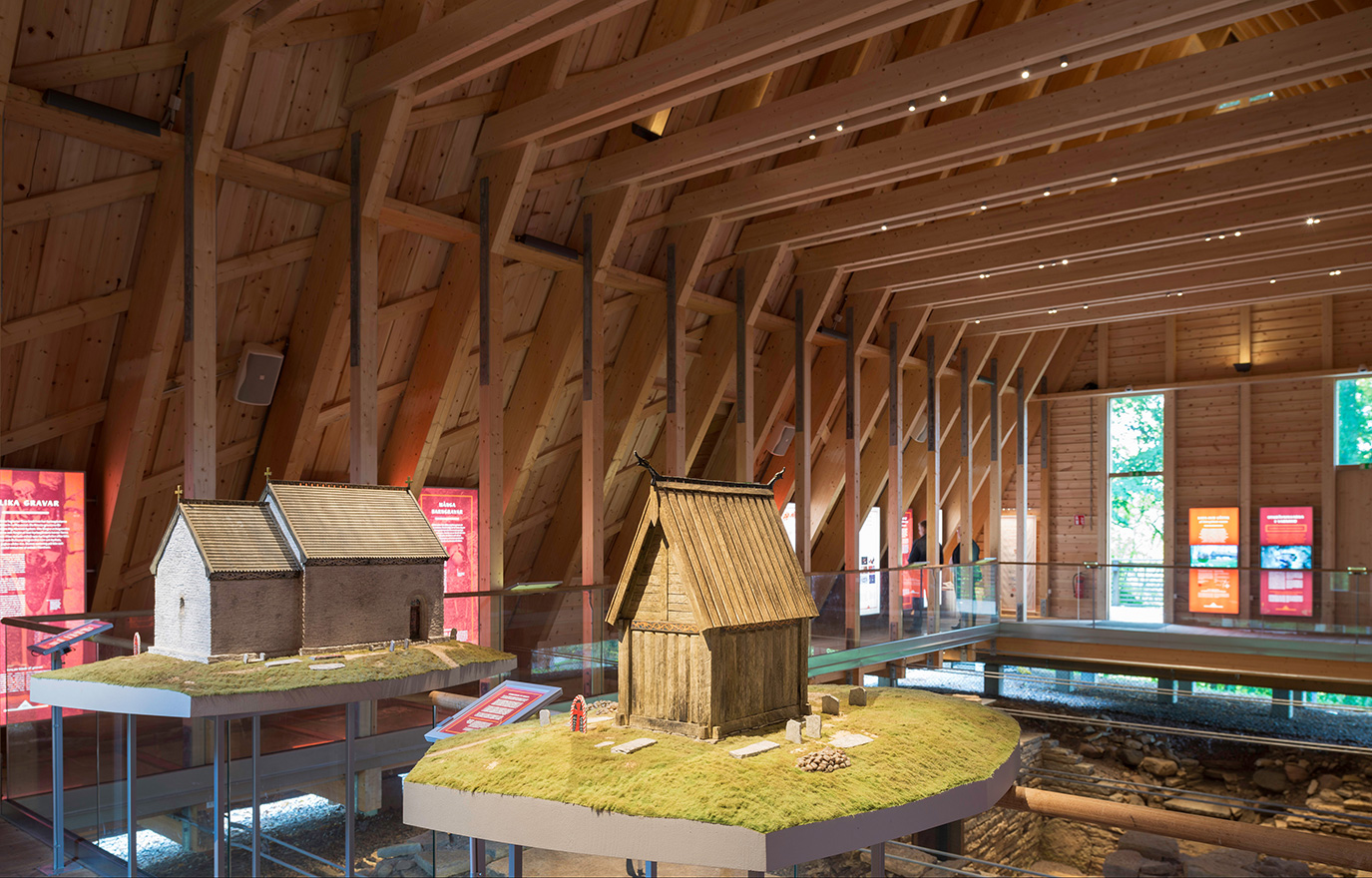 Intill Varnhems klosterkyrka i Västergötland har arkeologer grävt fram rester av en gammal gårdskyrka. Den är från 900-talet och förmodligen Sveriges äldsta kristna kyrka. För att göra den tillgänglig för besök behövde det gamla murverket och gravplatserna skyddas från vädrets påfrestningar. Genom att konstruera en överbyggnad skyddas grunden samtidigt som byggnaden bildar ett luftigt rum för besökarna.