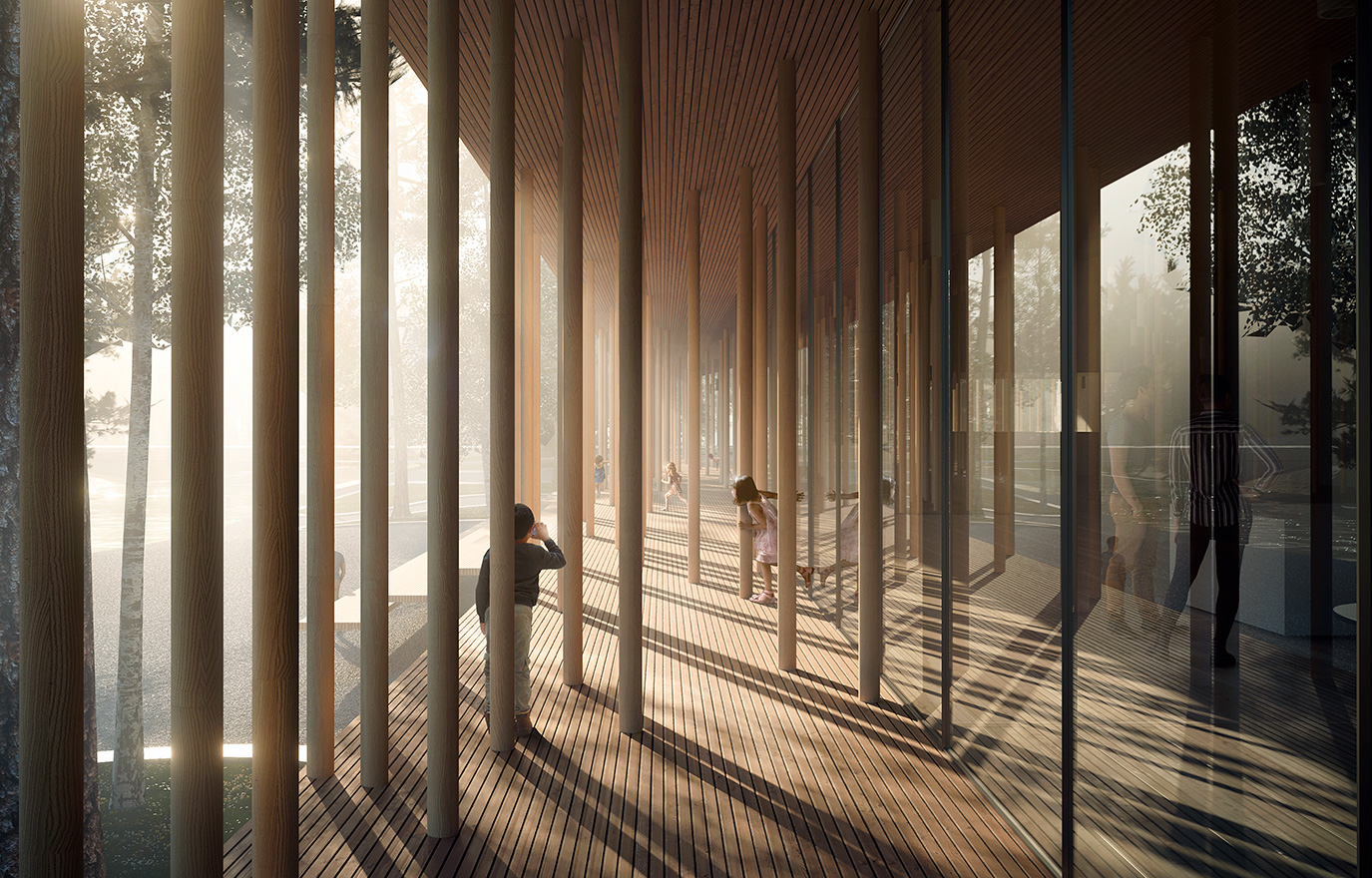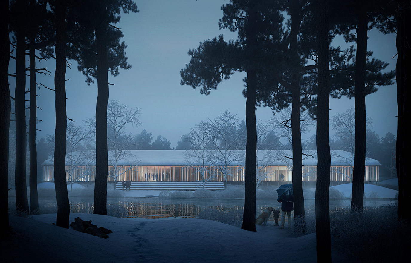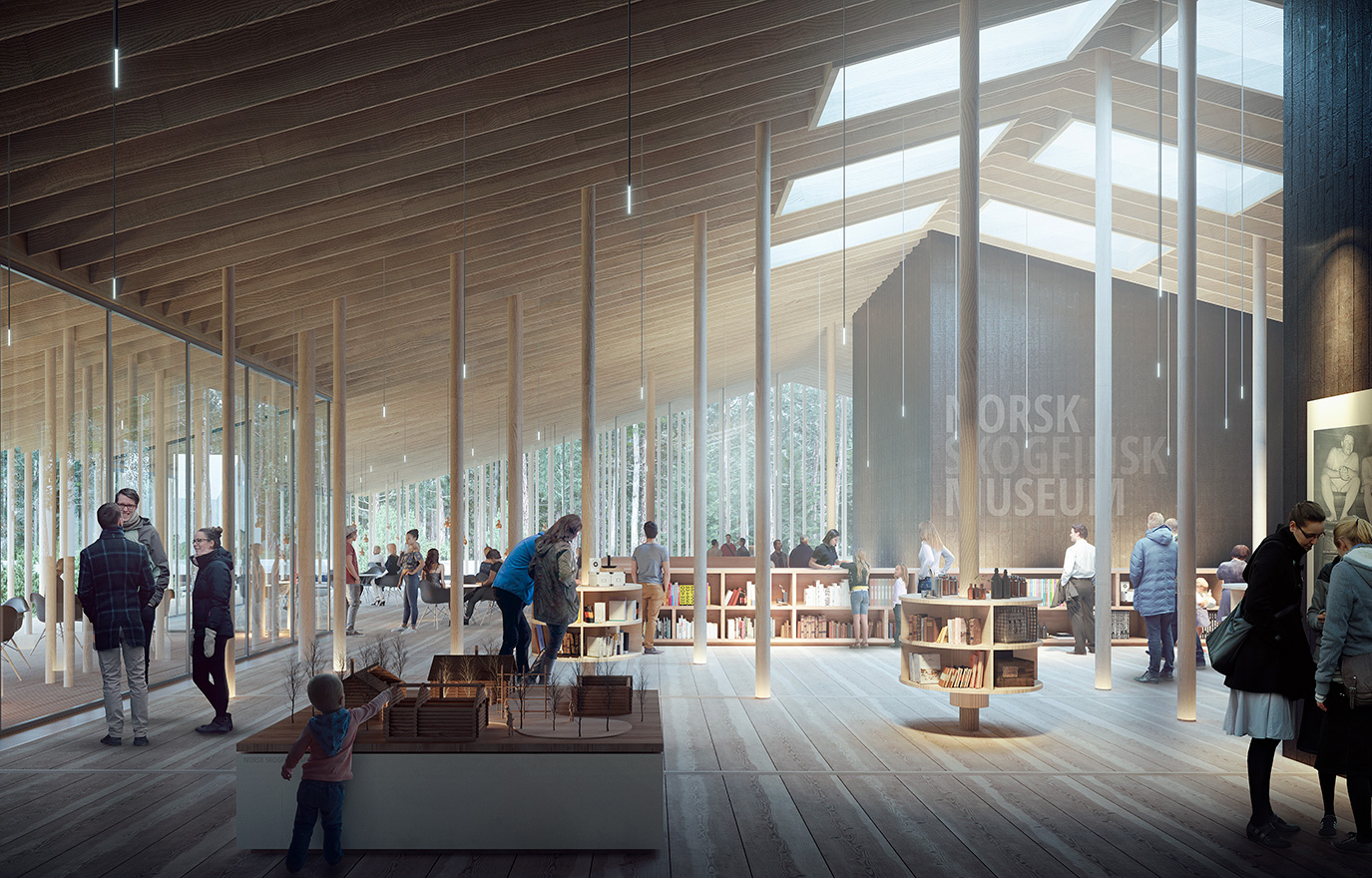 Det kommande skogsfinska museet ger intrycket av att befinna sig mitt i en skog – fast inomhus. Och med tanke på museets innehåll är känslan helt rätt. Det tyckte den norska juryn när de tilldelade den unga arkitektgruppen Lipinski Lasovsky Johansson förstapriset i den arkitekttävling som lockade över 200 deltagare. Arkitekternas tolkning av uppdraget och hur de med utgångspunkt i landskapet kan visa en arkitektur som passar väl in på det nya Finnskogens Hus var avgörande.