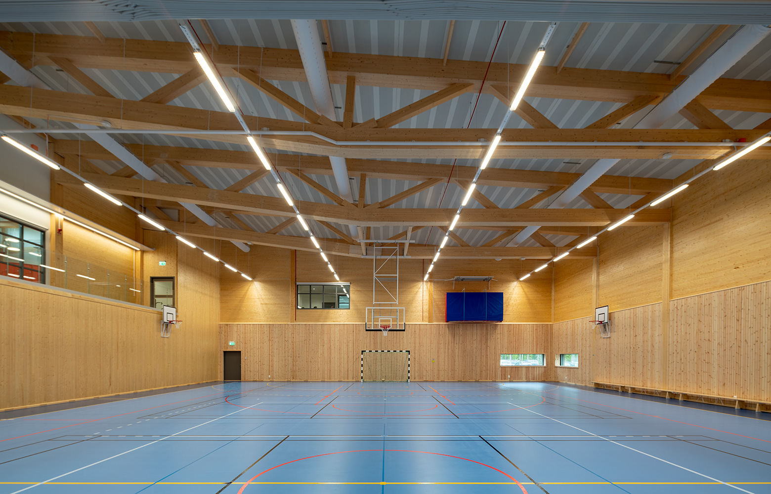 – Just de här limträfackverken är unika och vi är ensamma i Sverige om att göra dem. Det är sällan man ser limträ exponerat på det här sättet i en skola, och som limträleverantör blir jag sant lycklig när jag ser det färdiga resultatet, säger Göran Wahlberg, försäljningsingenjör på Martinsons som levererat alla träkonstruktioner i projektet.