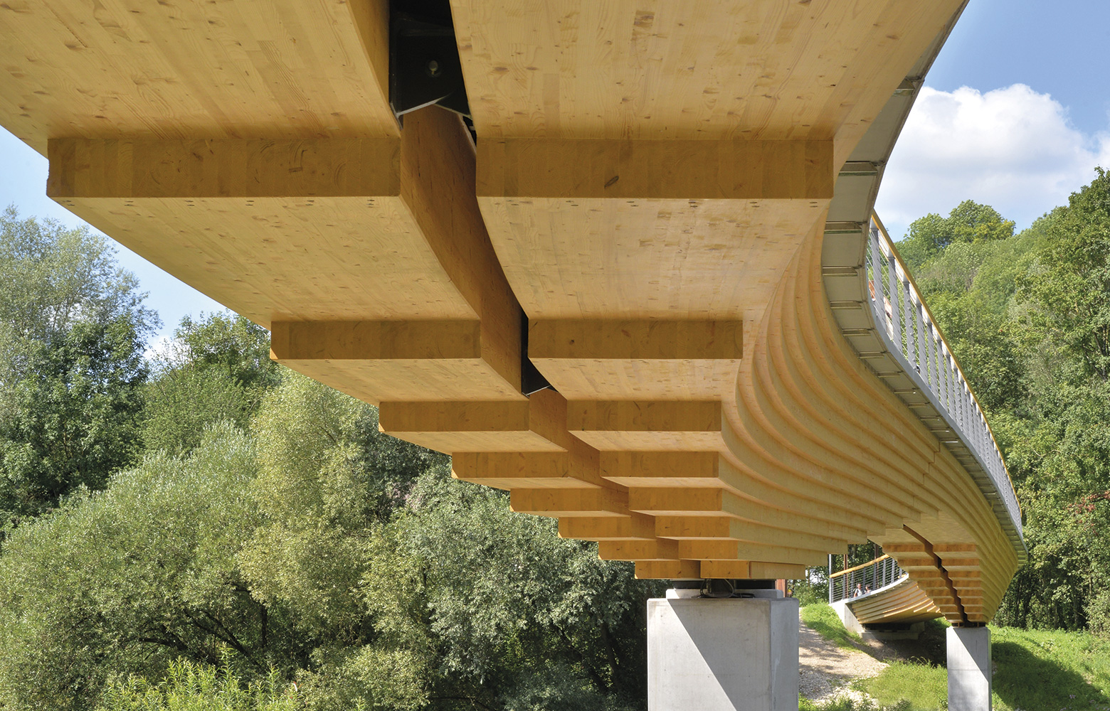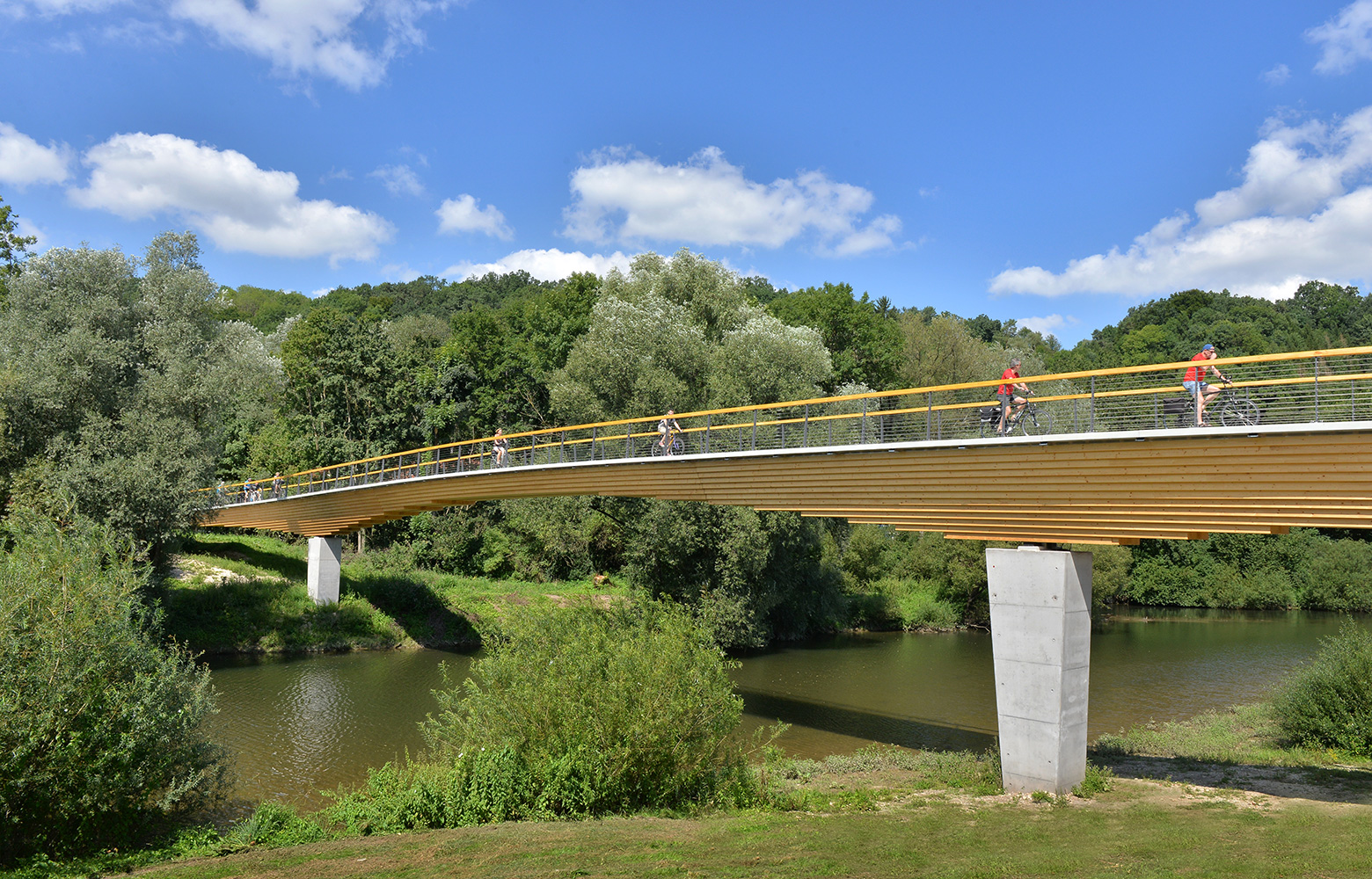 Den 362 kilometer långa floden Neckar rinner genom sydvästra Tyskland och korsas av närmare 250 broar. Det senaste tillskottet ligger i Neckartenzlingen. Det är en elegant s-formad träbro som med sina 96 meter låter cyklister och fotgängare ta sig över från den ena sidan till den andra.