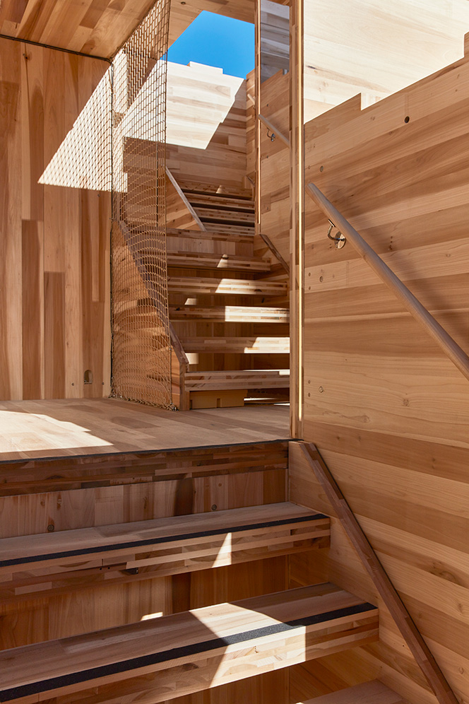 Strukturen består av 17 hopsatta moduler, producerade av 102 KL-träskivor, vilka för första gången har tillverkats i Storbritannien. Det amerikanska tulpanträet – valt eftersom det har visat sig vara starkare än gran – är visserligen importerat från Nordamerika, men KL-träskivorna har därefter tillverkats i en nyöppnad skotsk forskningsfabrik. För att ytterligare öka hållbarhet och stabilitet har träet på de översta panelerna värmebehandlats, vilket innebär att vädrets påverkan på materialet blir mindre och att det blir mer vattenresistent. Värmebehandling är inget nytt men detta är första gången som det görs på material som sedan blir en del av det korslimmade träet. Övriga paneler är behandlade med en matt klarlack.