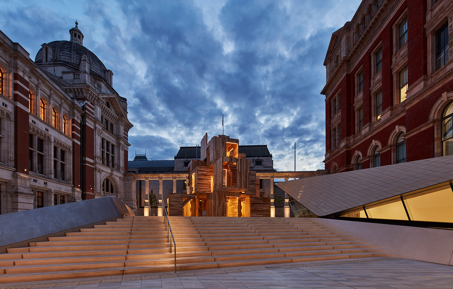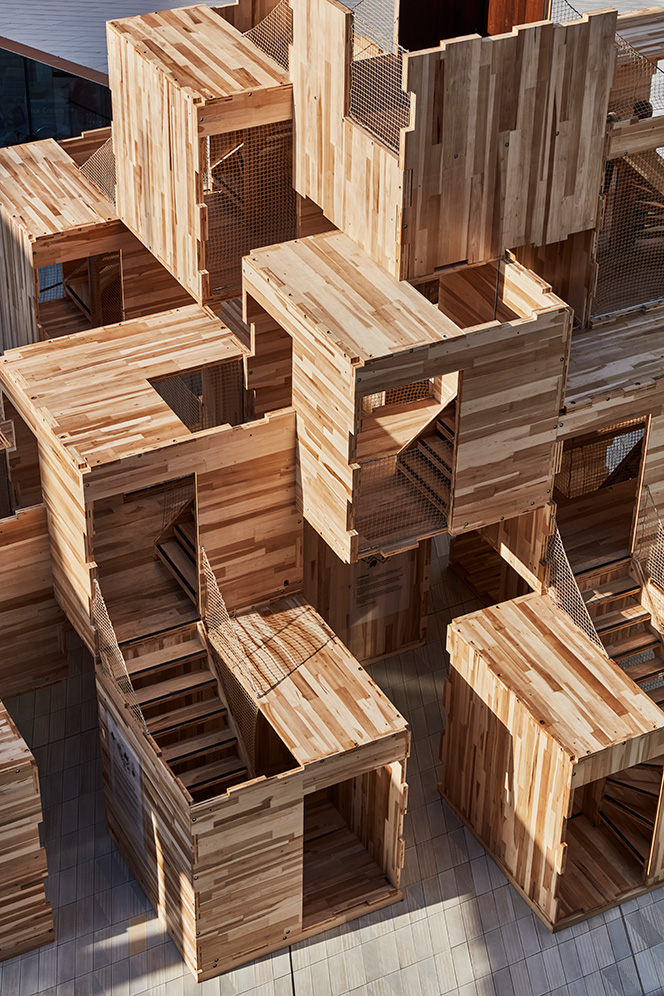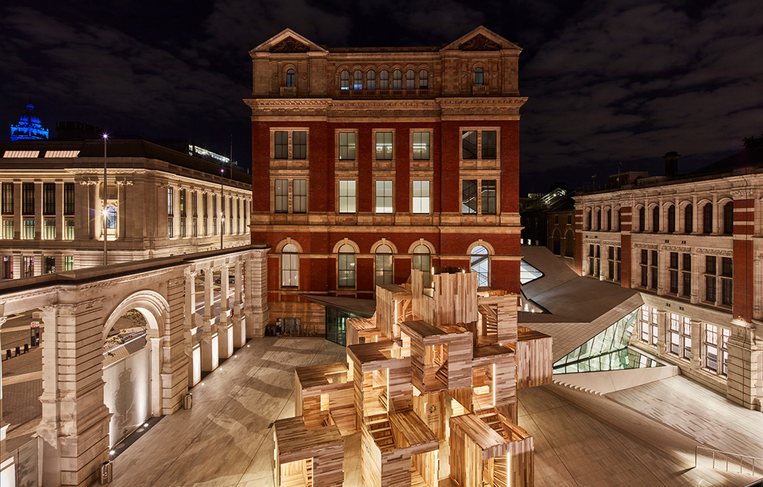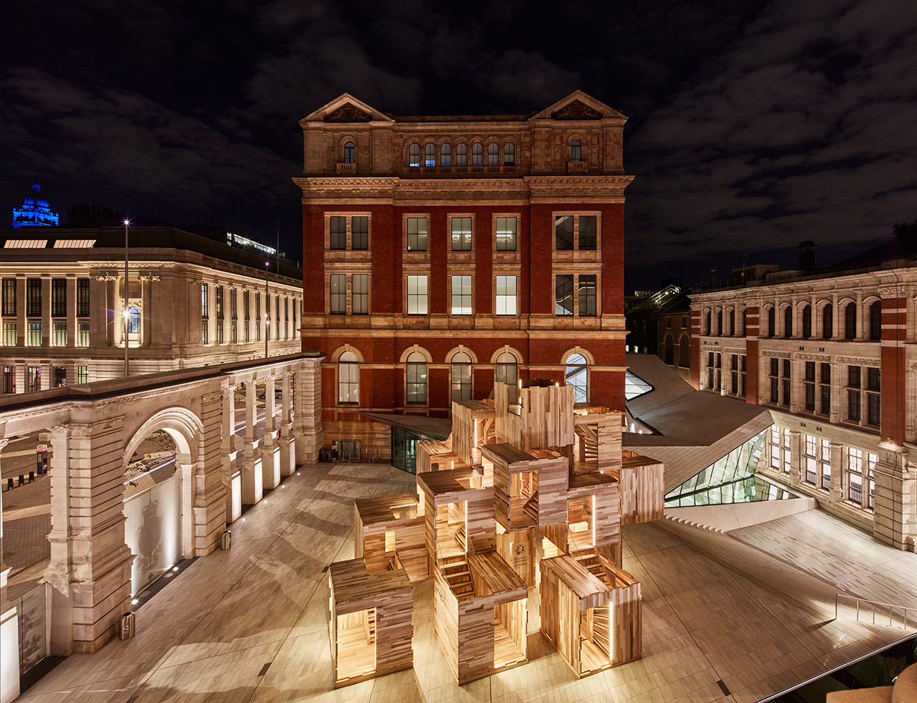 En lek med form och en uppvisning i KL-trä. Den tre våningar höga labyrintliknande byggnaden Multiply som i september ställdes ut på London Design Festival är skapad för att väcka diskussion om vår tids två stora utmaningar: behovet av nya bostäder samt vikten av att bekämpa klimatförändringarna.