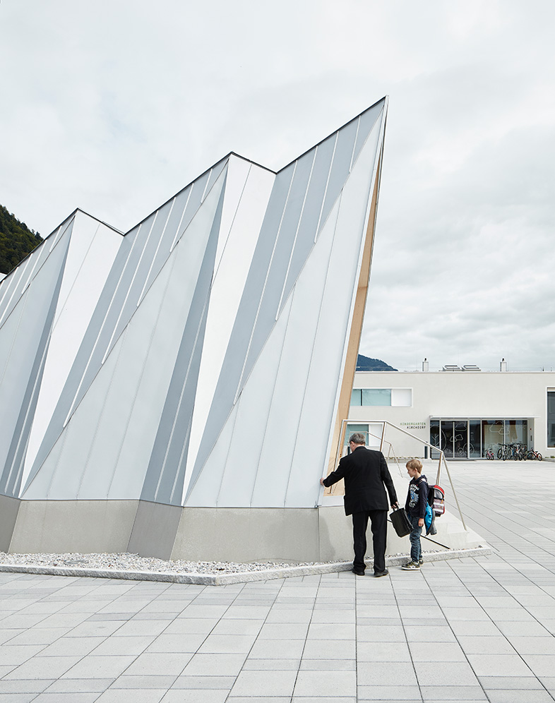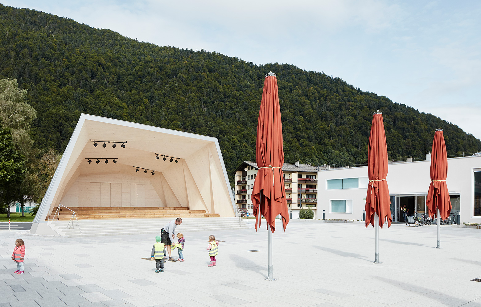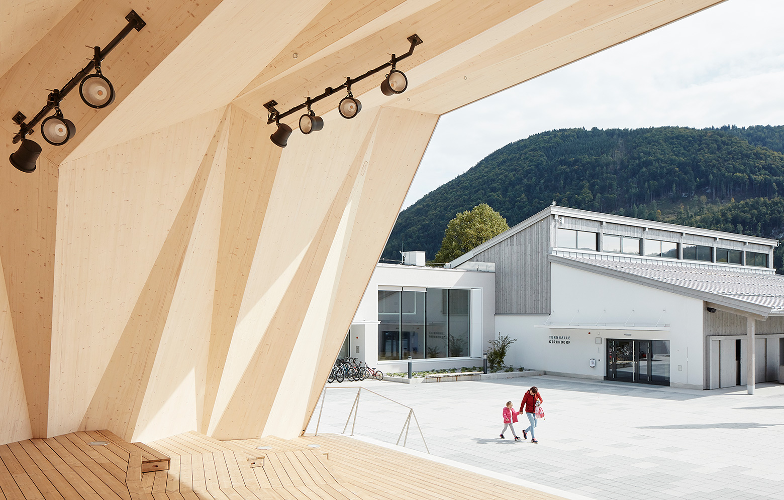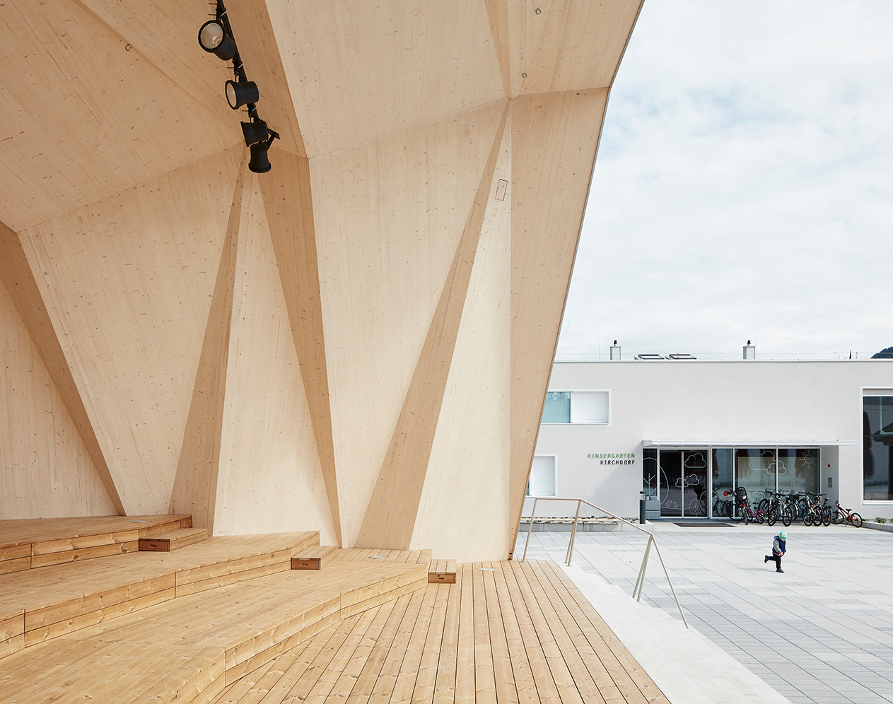 När Michael och Markus Fuchs vann tävlingen om ett nytt utbildningscenter i den lilla orten Kirchdorf valde de att skapa ett helt nytt torg med flera olika byggnader i stället för att integrera samtliga funktioner i en byggnad. Eftersom musiklivet är en viktig del av kulturlivet fyller den senast tillkomna byggnaden, en musikpaviljong, en viktig funktion.