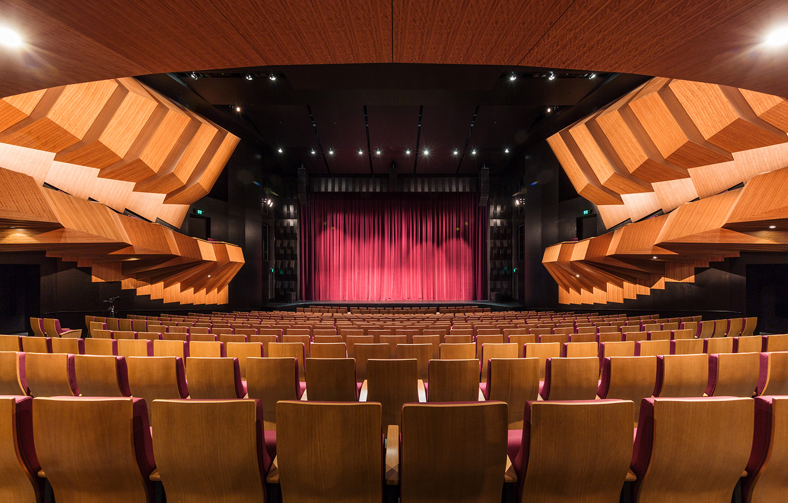 Utöver rutnätet av limträ, som tillverkats av gran från Skandinavien, finns även flera andra synliga detaljer av trä. Träväggarna som ramar in både foajén och teatern med plats för 800 personer är alla klädda i faner från ett och samma träd, ett massivt blackbutträd som är ett slags eukalyptusträd. Trädet fanns hos ett sågverk i Queensland som hade sparat det och väntade på att rätt projekt skulle dyka upp – vilket det till slut gjorde.
