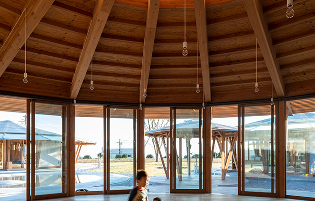 Den nya förskolan i japanska Fuji påminner med sina runda byggnader om en samling såpbubblor, där varje liten bubbla består av ett rum, med en funktion och utan några avgränsande innerväggar. Runda byggnader får ofta kritik för att de är svåra att möblera och för att strukturen är komplicerad att bygga. Men, menar Tezuka Architects, fördelarna är också många. Framför allt blir sikten runt omkring förskolan nu utmärkt, eftersom formen gör att det går lätt att se mellan de olika volymerna. Det är ett av de viktigaste kraven på en förskola, där personalen alltid behöver ha uppsikt över barnen. Formen framkallar också fantasi och rörelser hos barnen.