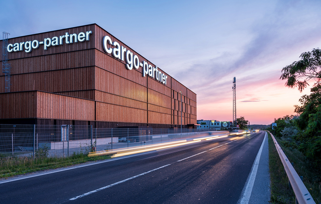 Den traditionella bandklippningen hade vid invigningen av företaget Cargo-Partners nybyggda logistikcenter, invid Wiens flygplats, ersatts av att företagets vd Stefan Krautner använde motorsåg för att såga upp en grov timmerstock. Ett symboliskt välvalt alternativ med tanke på den stora mängd trä som kommit till användning – totalt 4 200 kubikmeter miljöcertifierad gran och lärk som vuxit, avverkats och sågats i Bayern och Österrike – och som nu lagrar samma mängd koldioxid.