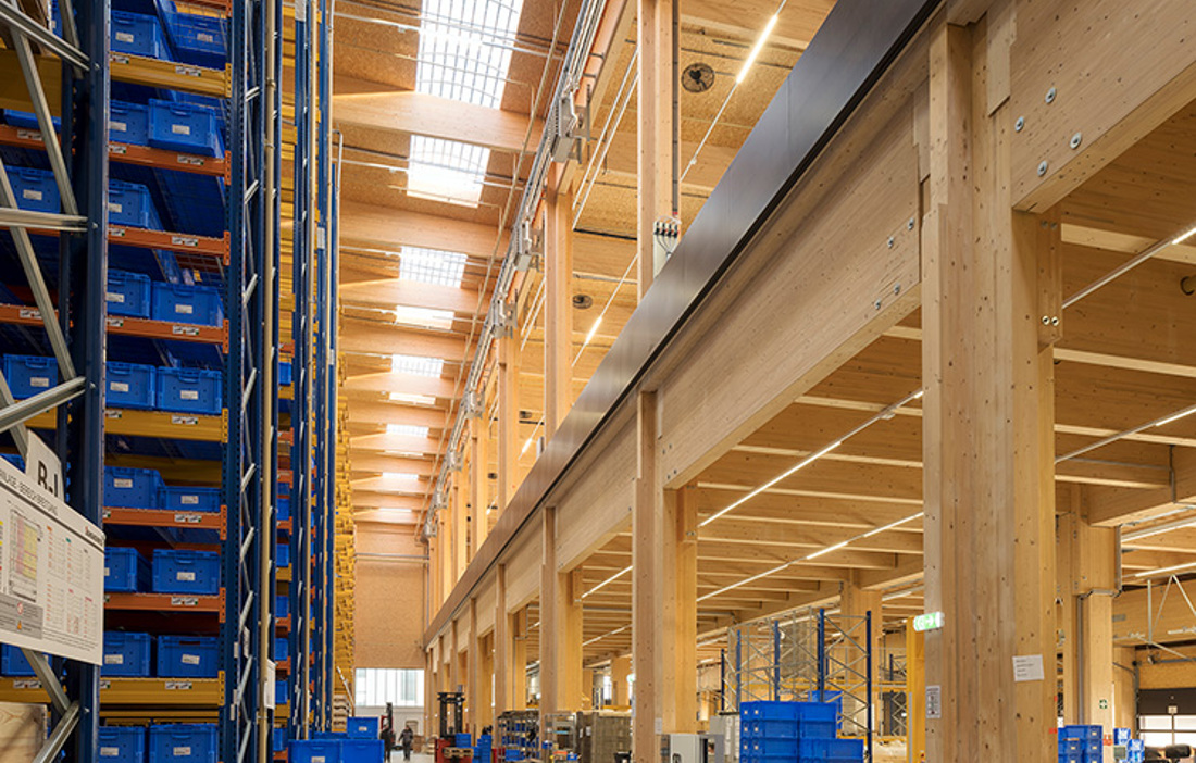 De tekniska utmaningarna med en storskalig byggnad av trä är emellertid avsevärda. Kraven på de små toleranser som övervåningens datastyrda lagersystem för med sig, särskilt som det handlar om ett levande material som sväller och krymper allt efter klimat och temperatur, går inte att göra avkall på.