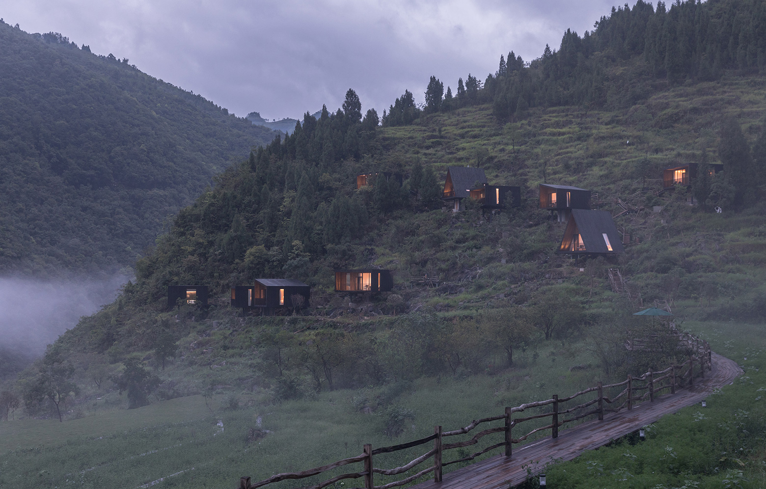 Ett nytt kinesiskt projekt ska bidra till att förbättra för landsbygden och hjälpa små byar att ta sig ur fattigdom genom att utveckla sin turistnäring. Tuanjie är en av de orter som har involverats i projektet, och här har böljande landskap varit ortens största tillgång. Det hade arkitekterna från ZJJZ som utgångspunkt när de på en bergsluttning skapade tio gäststugor, vars lugna form tillsammans med omgivningarna ska ge besökarna en stund av harmoni. Arkitekterna ville skapa en känsla av enkelhet och valde därför tre geometriska basformer att utgå från – helt rektangulär eller triangelformad samt en kombination mellan de två – där varje liten stuga har fått sitt eget uttryck och en stomme som är uppförd av ett kombinerat system med stål- och trästruktur.