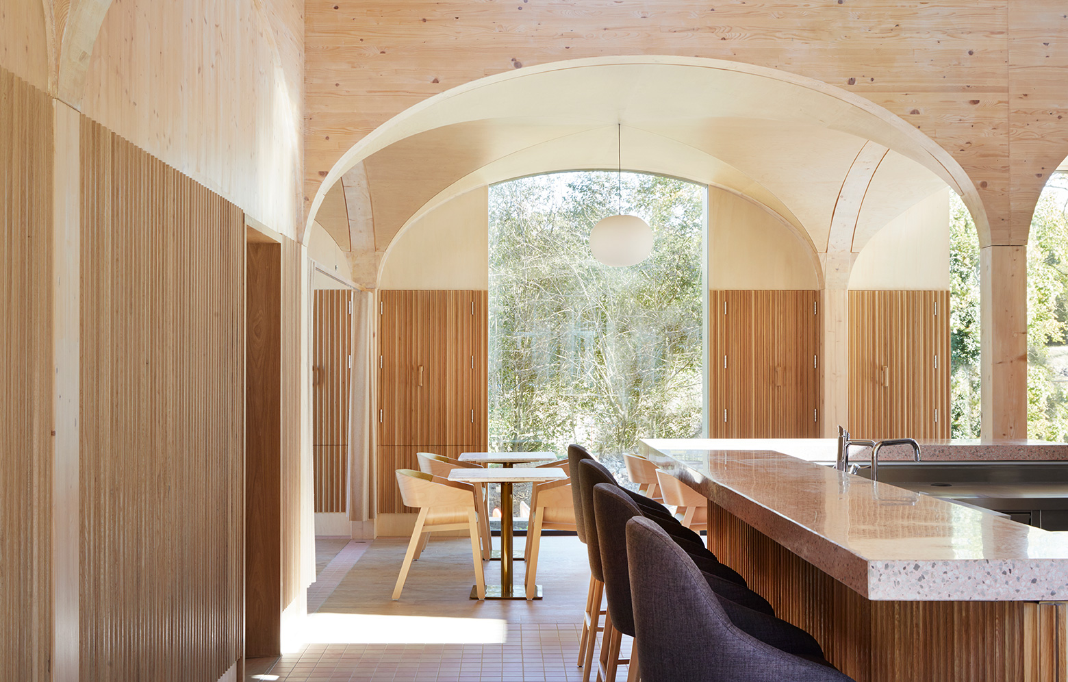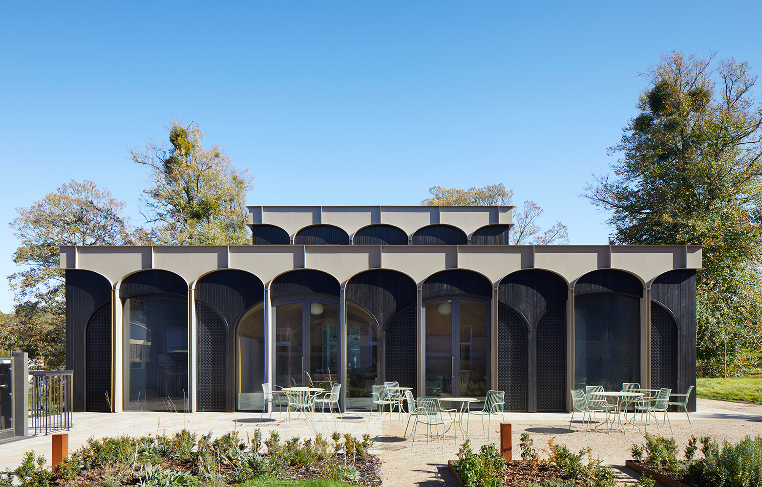 När den anrika herrgården i naturskyddsområdet Sevenoaks tre mil sydost om London skulle kompletteras med en ny restaurang inspirerades arkitekterna på Morris+Co av orangeriet från 1800-talet som tidigare stod på platsen. Genom att ge restaurangen samma uttryck, med väl tilltagna fönster och ljusinsläpp, har de knutit ihop den moderna byggnaden med de äldre.