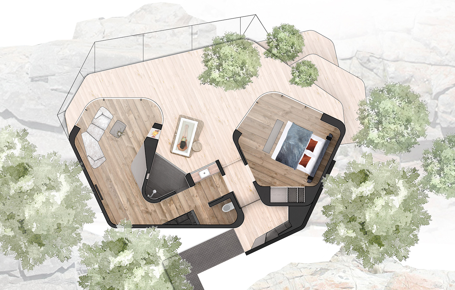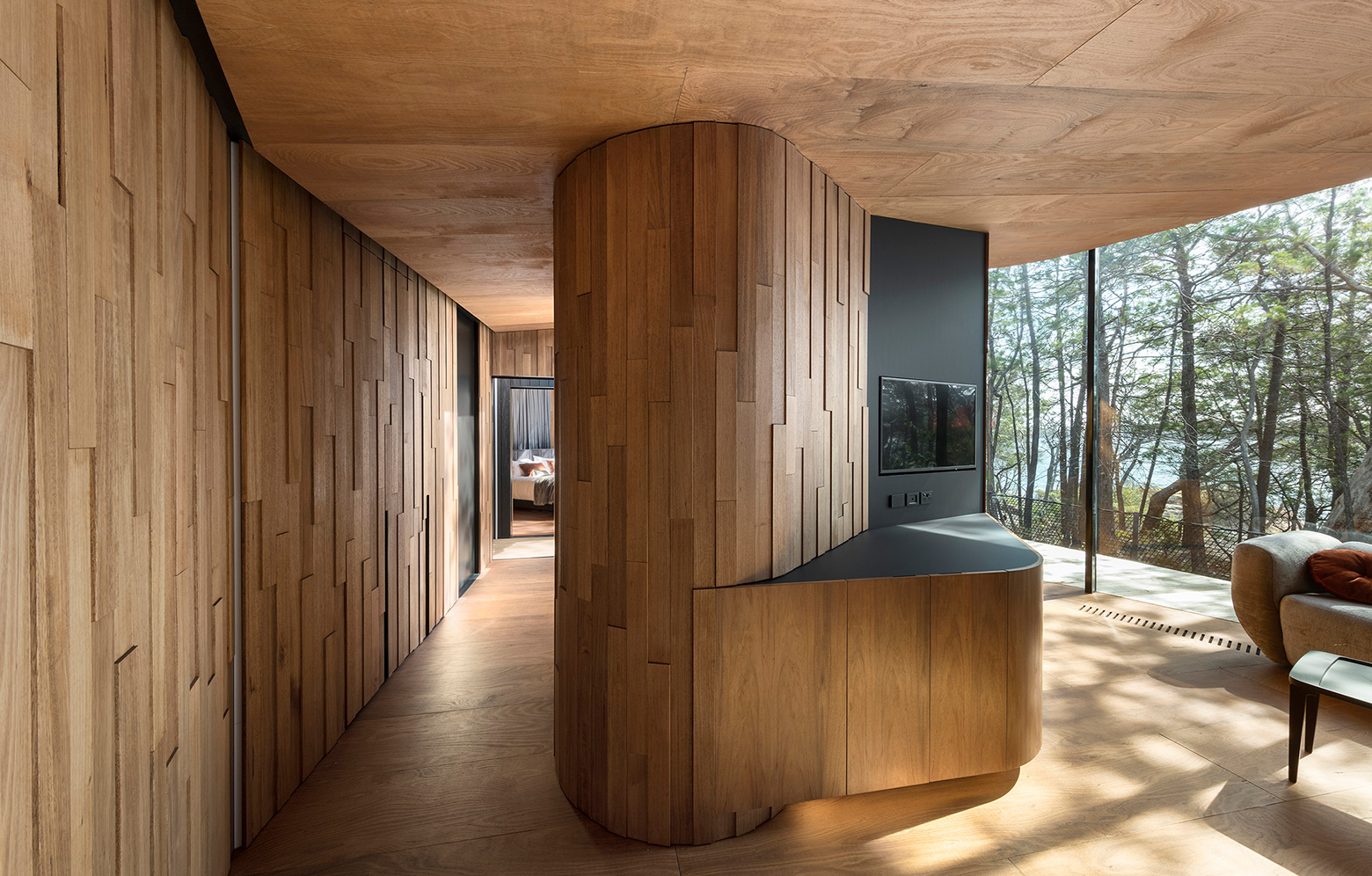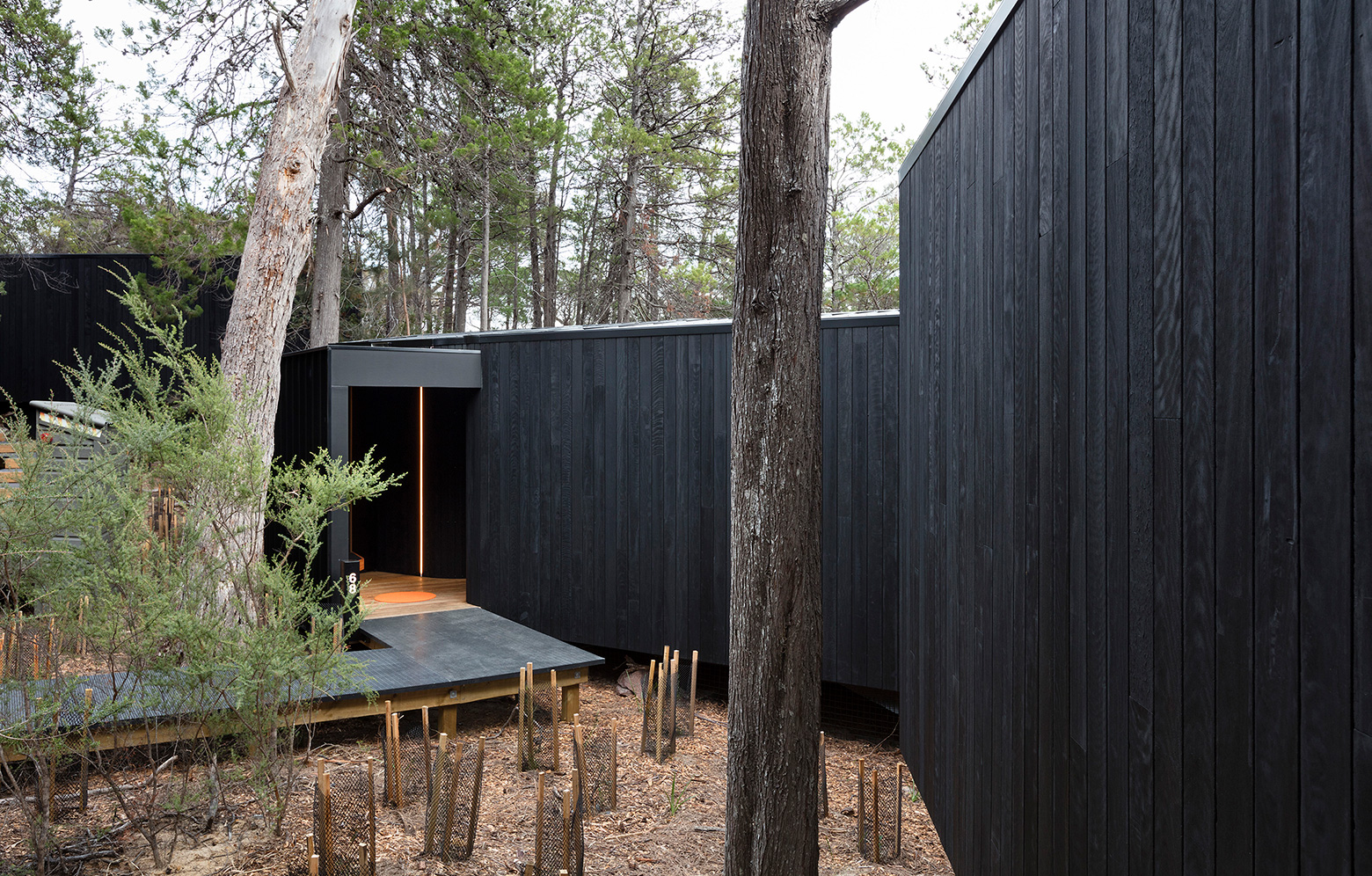Till Tasmanien kommer människor främst för att upptäcka den vilda naturen. Freycinet, på Tasmaniens östkust, är en av öns mest populära nationalparker. När parken utvecklades under 1990-talet byggdes här 60 övernattningsstugor. När Freycinet Lodge nyligen beställde ytterligare nio stugor med omgivande terrasser var instruktionerna tydliga: stugorna skulle smälta in i området, spegla platsens skönhet och göra så litet koldioxidavtryck som möjligt.