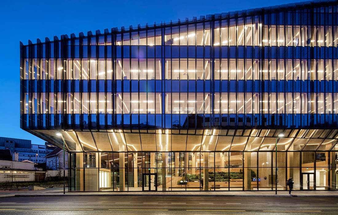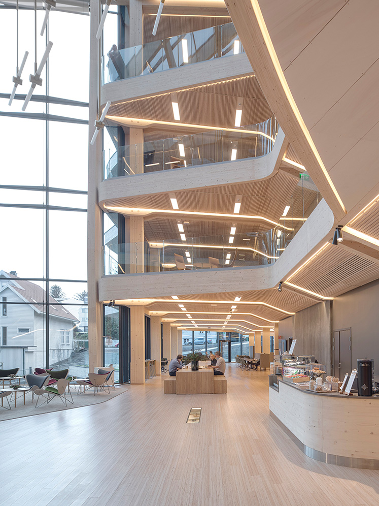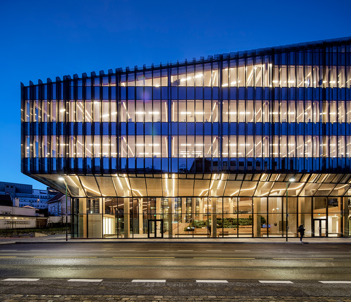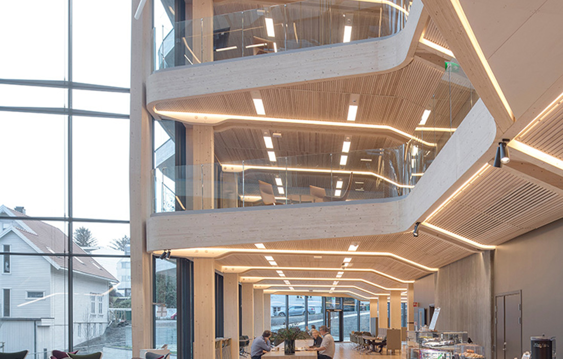 – Trä är ett bra miljöval som känns modernt och framtidsinriktat och ligger i linje med bankens värderingar. Vi ville också att vårt nya huvudkontor skulle smälta in i Stavangers befintliga trähusbebyggelse. Dessutom bidrar trä till en varm, funktionell och trivsam miljö som våra kunder och medarbetare ska kunna mötas och vistas i, säger Arne Austreid, vd Sparebank 1 SR-Bank.