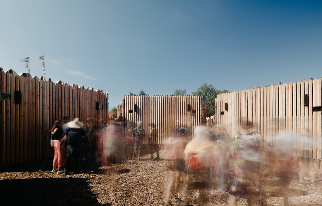 Paviljongen, som mätte 30 meter i diameter, innehöll flera gångar som alla ledde till en öppen yta i dess mitt, omgiven av 3,5 meter höga plankor som ska ge en omslutande upplevelse. Här kunde man lyssna på inspelningar av surrande från bin samt musik skapad utifrån samma ljud. Tack vare vibrationssensorer kunde man också koppla samman aktiviteten från närområdets bin med ett ljusspel som var i gång dygnet runt. Besökarna uppmuntrades också att med hjälp av små borrar skapa hål i timret så att paviljongen kunde erbjuda nya hem till bina.