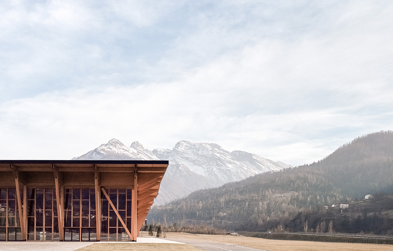 I italienska Agordo smälter en nyuppförd och mångsidig kongresshall samman med det vidsträckta alplandskapet. Byggd helt av trä, med högt i tak och generösa fönsterpartier, känns hela tiden Dolomiternas kalkstenstoppar påtagligt närvarande. Lekfullt, luftigt, genomtänkt och estetiskt tilltalande drar den stora utställningshallen gärna blickarna till sig.