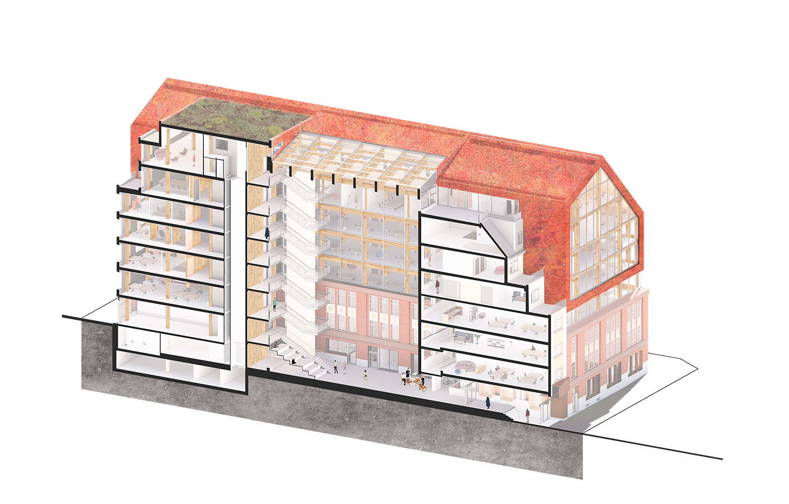– Att använda trä i påbyggnaden var ett ganska självklart val för oss. Utöver klimatnyttan visste vi att det skulle resultera i färre förstärkningsåtgärder och att det skulle finnas besparingar att göra i en snabbare process. Vi såg också massor av fördelar med att exponera träet invändigt eftersom det ger en hälsosammare inomhusmiljö och är ett vänligt material som det är lätt att trivas med, säger Matthew Eastwood, uppdragsansvarig arkitekt på Tengbom.