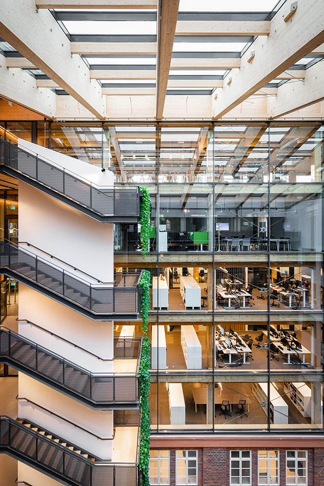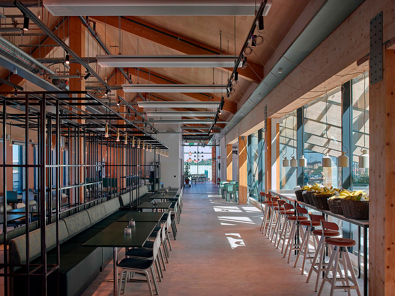 Tillbaka till huvudstaden och de gamla industrikvarteren i Hammarby sjöstad som under de senaste åren har genomgått en stor förändring. Kronan på verket är kontorsbyggnaden Trikåfabriken. Här har den ursprungliga tegelbyggnaden från 1929 renoverats invändigt och fått en påbyggnad med trästomme i fem våningar. Projektet är ett bra exempel på hur samtida arkitektur kan fungera som en länk mellan dåtid och nutid.