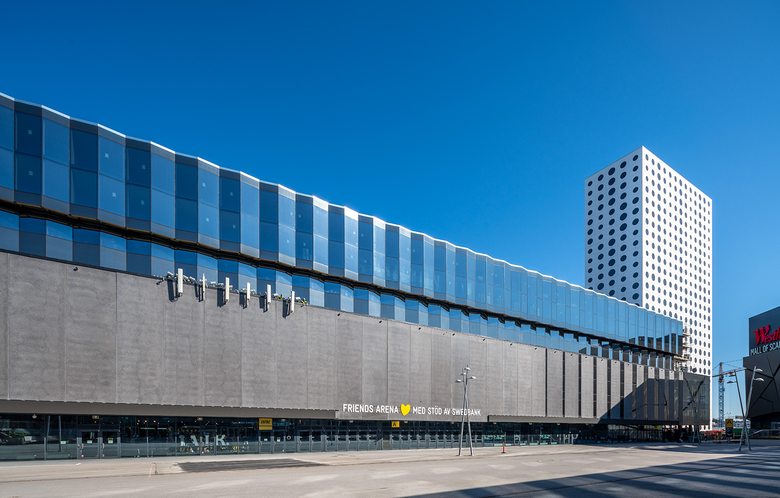 I Solna, strax norr om Stockholm, har Arenastaden tagit plats som en av Europas modernaste stadsdelar. I takt med att området har utvecklats och vuxit har efterfrågan på hotellrum ökat. Det är anledningen till att Quality Hotel Friends nu bygger ut sin verksamhet med drygt 250 nya rum, placerade i en påbyggnad av KL-trä och limträ ritad av Wingårdhs. De nya hotellrummen fördelas på tre våningsplan ovanpå den lägre delen av det befintliga hotellet som kallas Arena Gate.