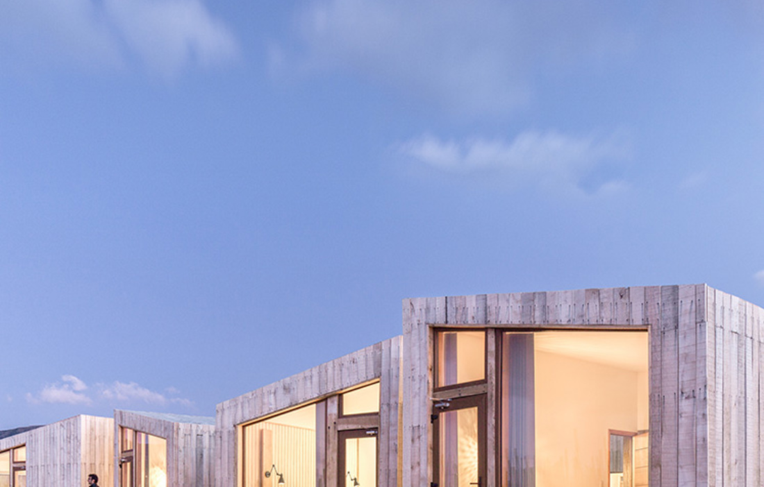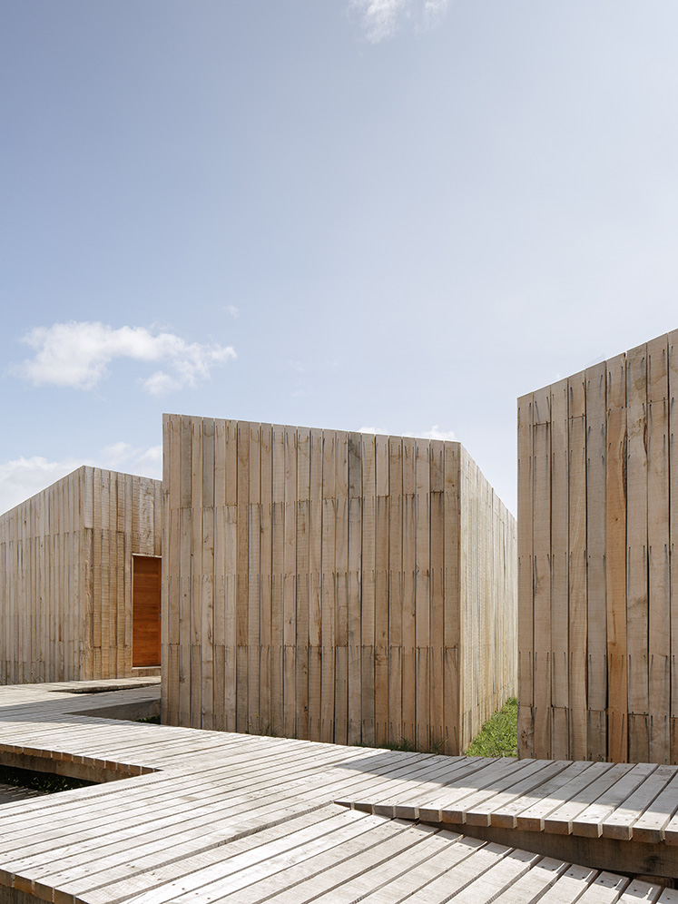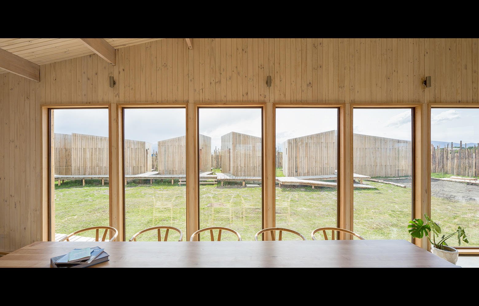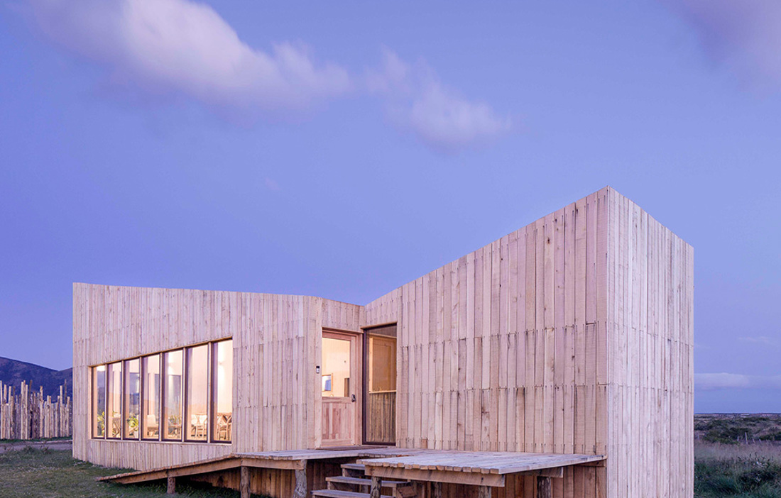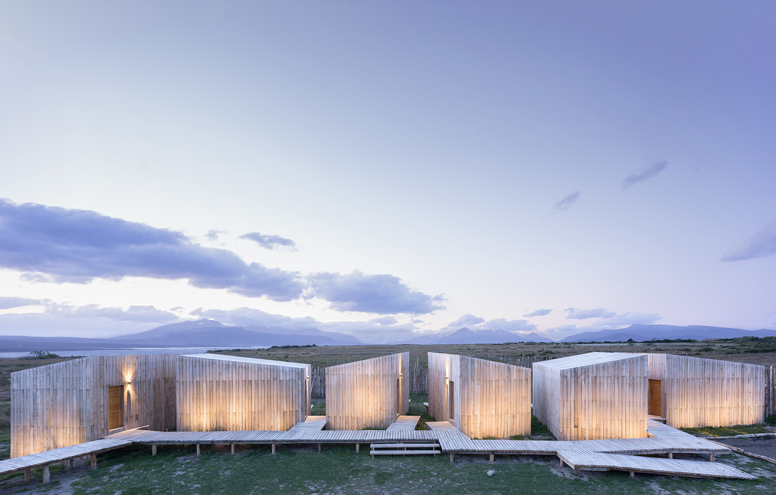 Hotellet består av sex moduler, som alla innehåller sovrum och badrum, samt en byggnad med kök och gemensamhetsutrymmen. Byggnadens form är en spegling av horisontens silhuett, och naturen ska kunna upplevas både interiört och exteriört. De prefabricerade modulerna – både väggar och tak – är av lenga (Nothofagus pumilio), ett lokalt växande träd som trivs på platser med mager jord, kyligt klimat och kraftiga vindar. Det har gjort träslaget tåligt för extremt väder, och allteftersom det åldras kommer det än mer att smälta in i landskapet. För att göra så små avtryck som möjligt är konstruktionen byggd på plintar.
