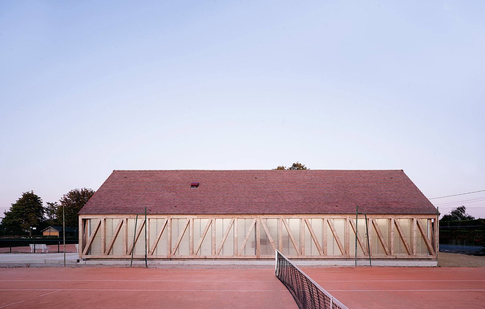 Den som är på genomresa i Normandie möts av äldre kvarter med traditionella korsvirkeshus. Det tog arkitekterna på Lemoal Lemoal fasta på när tennisklubben i kustorten Cabourg skulle få en ny byggnad med omklädningsrum. Resultatet blev en nutida tolkning av områdets traditionella arkitektur, byggd med lokala material och av hantverkare med kännedom om trakten.