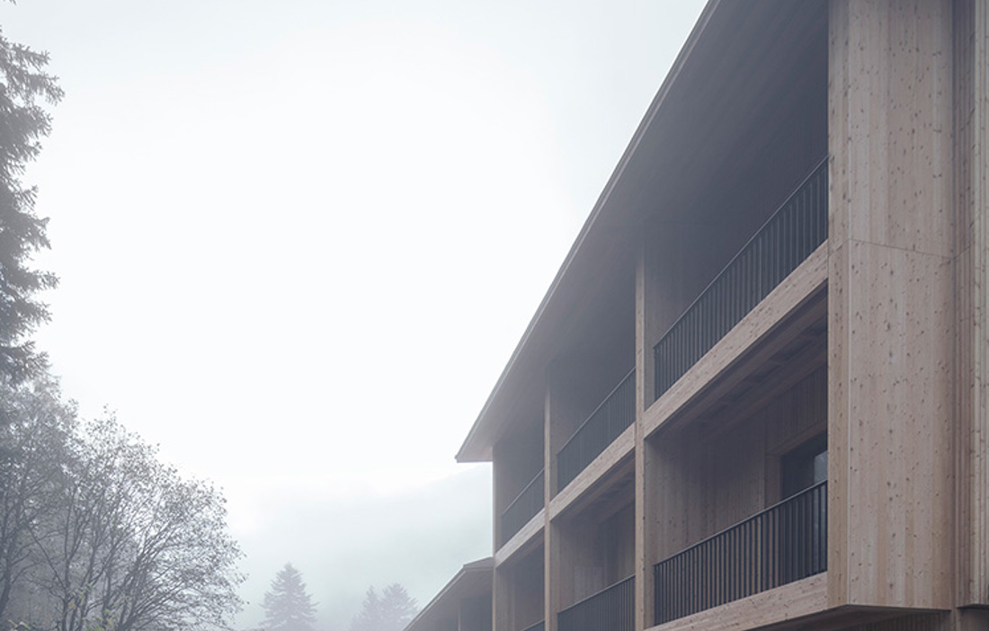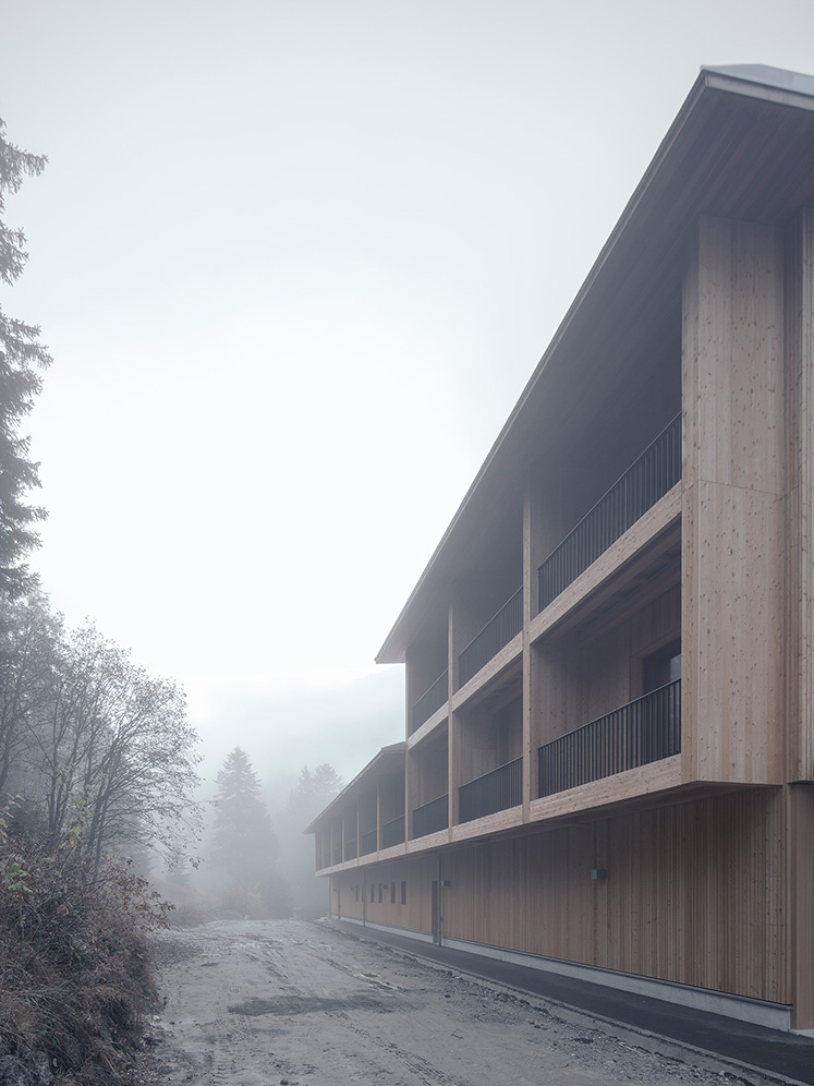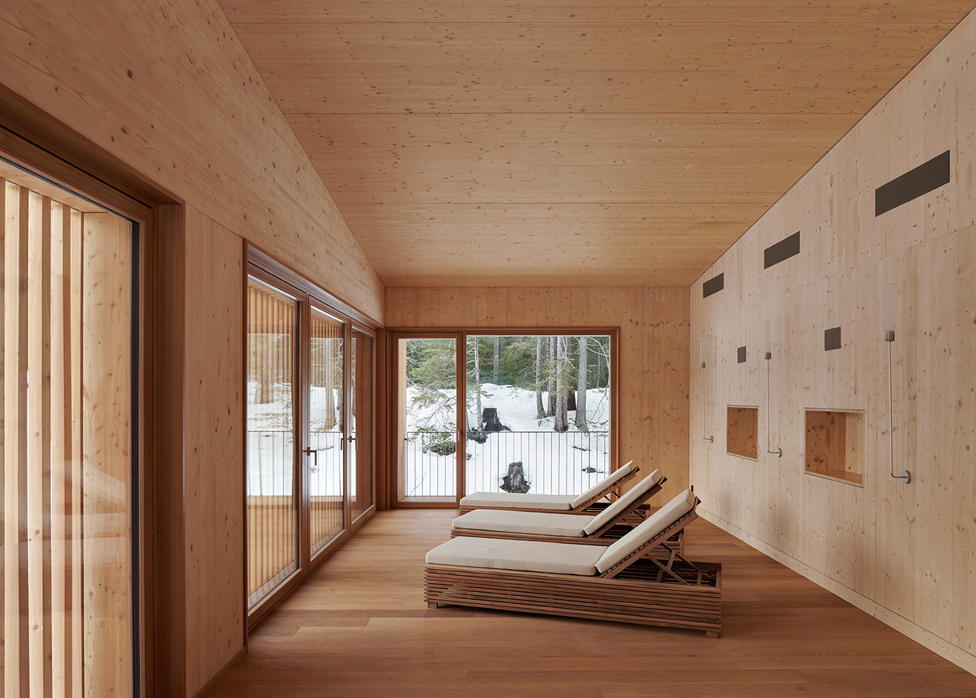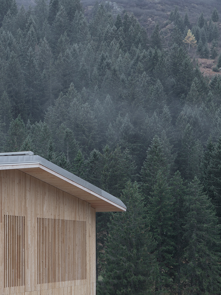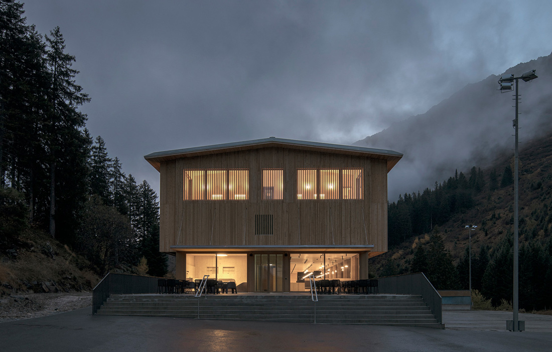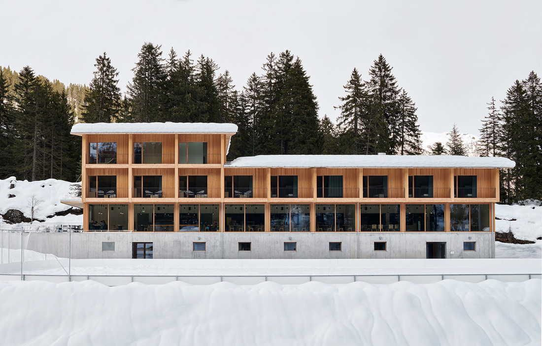 I de schweiziska alperna, 1 400 meter över havet, ligger ett center för längdskidåkning. Här samlas familjer och elitåkare för att ta del av välpreparerade spår i en vacker miljö. Sedan centret skapades under 1970-talet har det varsamt byggts ut. Det senaste tillskottet är en byggnad för umgänge och övernattning, försiktigt insmugen mellan befintliga byggnader för att inte stjäla utrymme och uppmärksamhet från den för platsen så viktiga omgivande naturen.